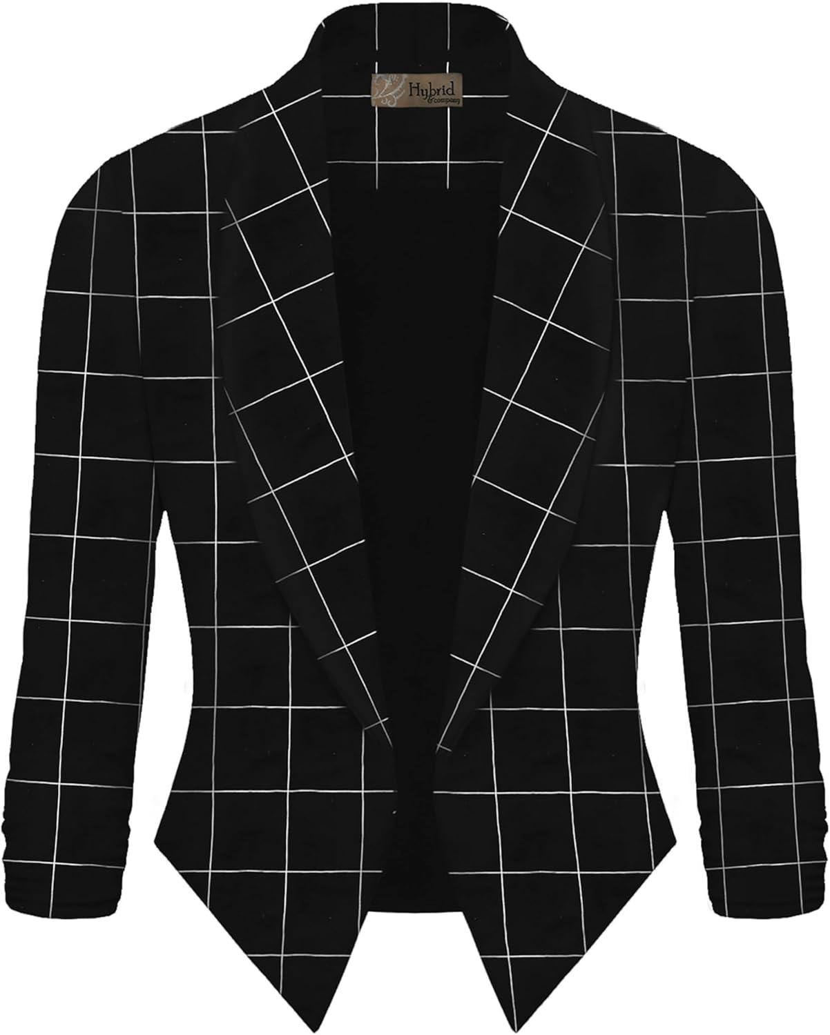 Hybrid & Company Lightweight Open Front Cardigan Classic Ruched Sleeve Work Office Blazer Suit Jackets(11297-black/White)