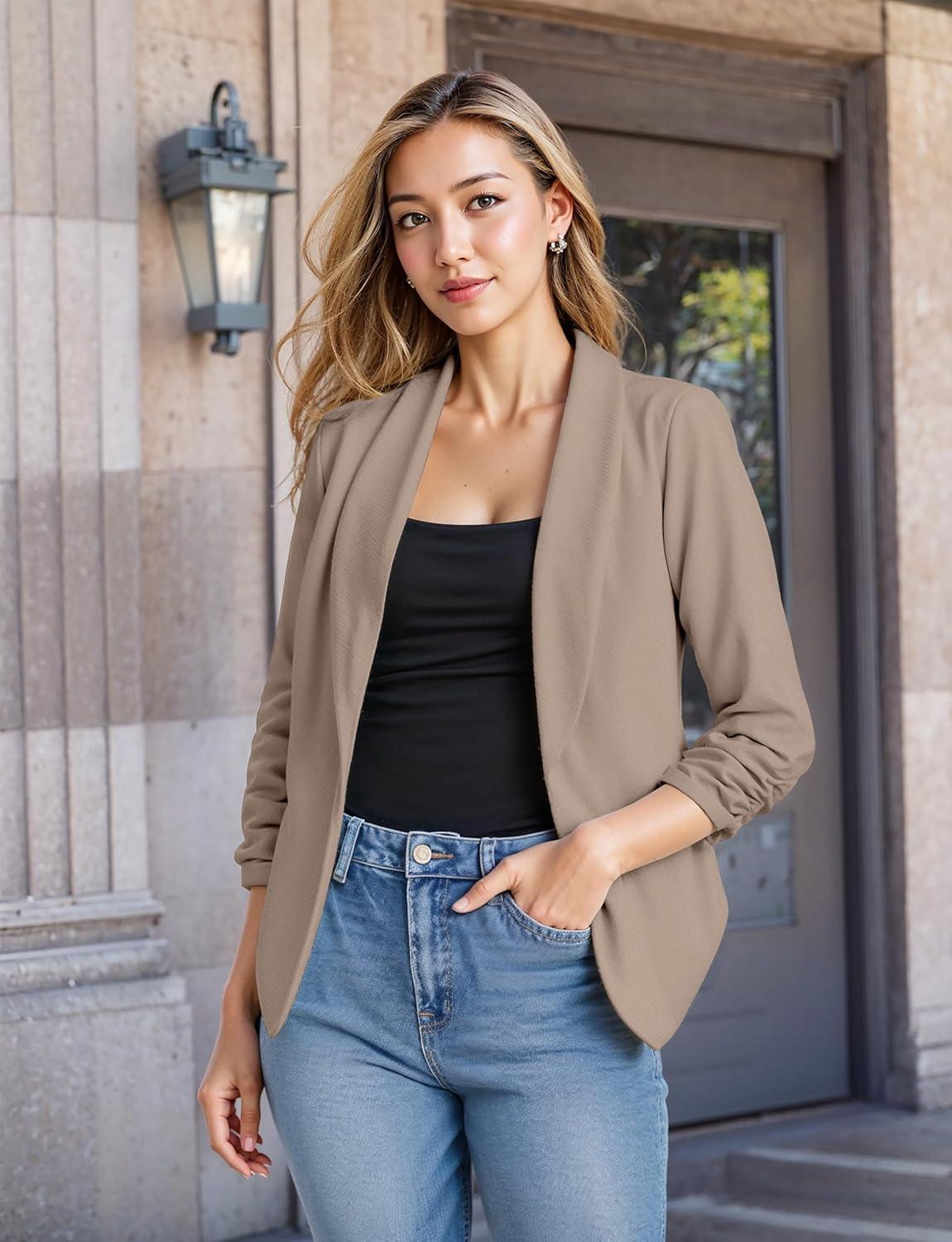 imageHybrid ampamp Company Lightweight Open Front Cardigan Classic Ruched Sleeve Work Office Blazer Suit JacketsBeige