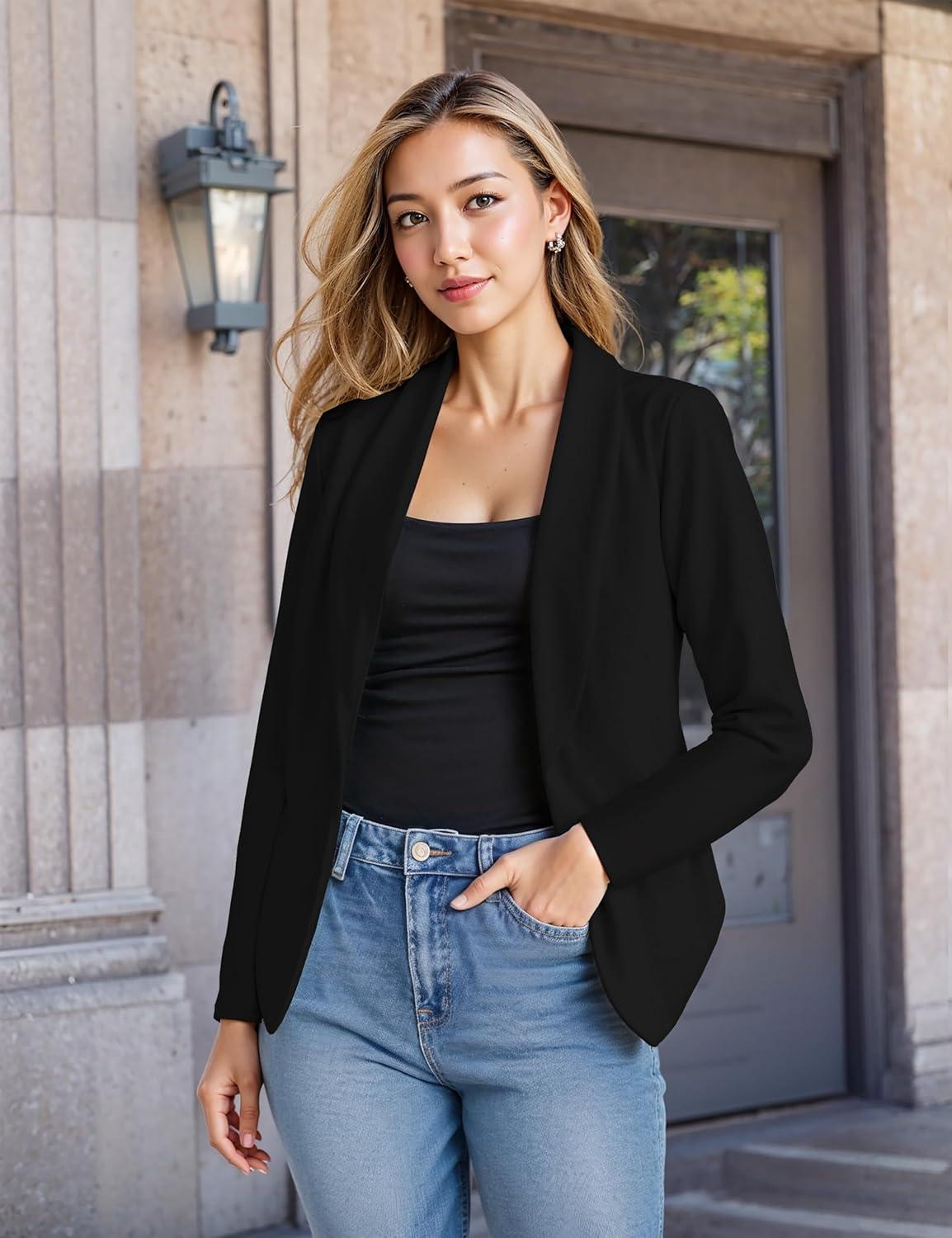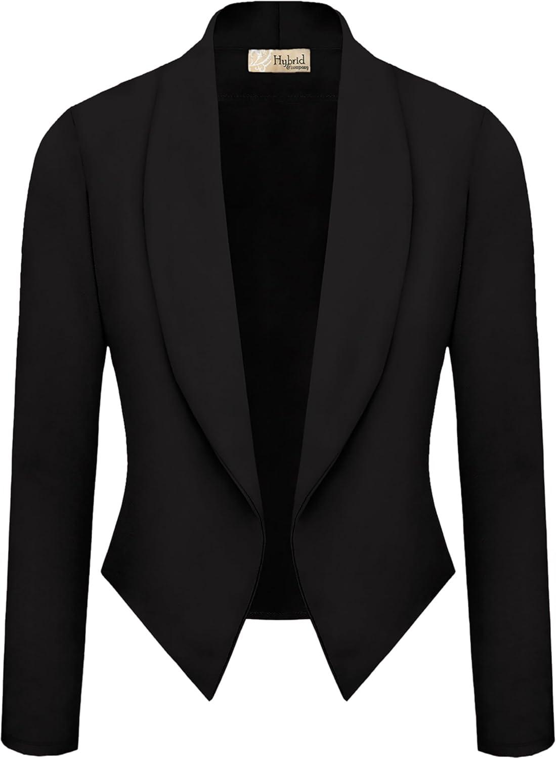Hybrid & Company Lightweight Open Front Cardigan Classic Ruched Sleeve Work Office Blazer Suit Jackets(Black-9789)