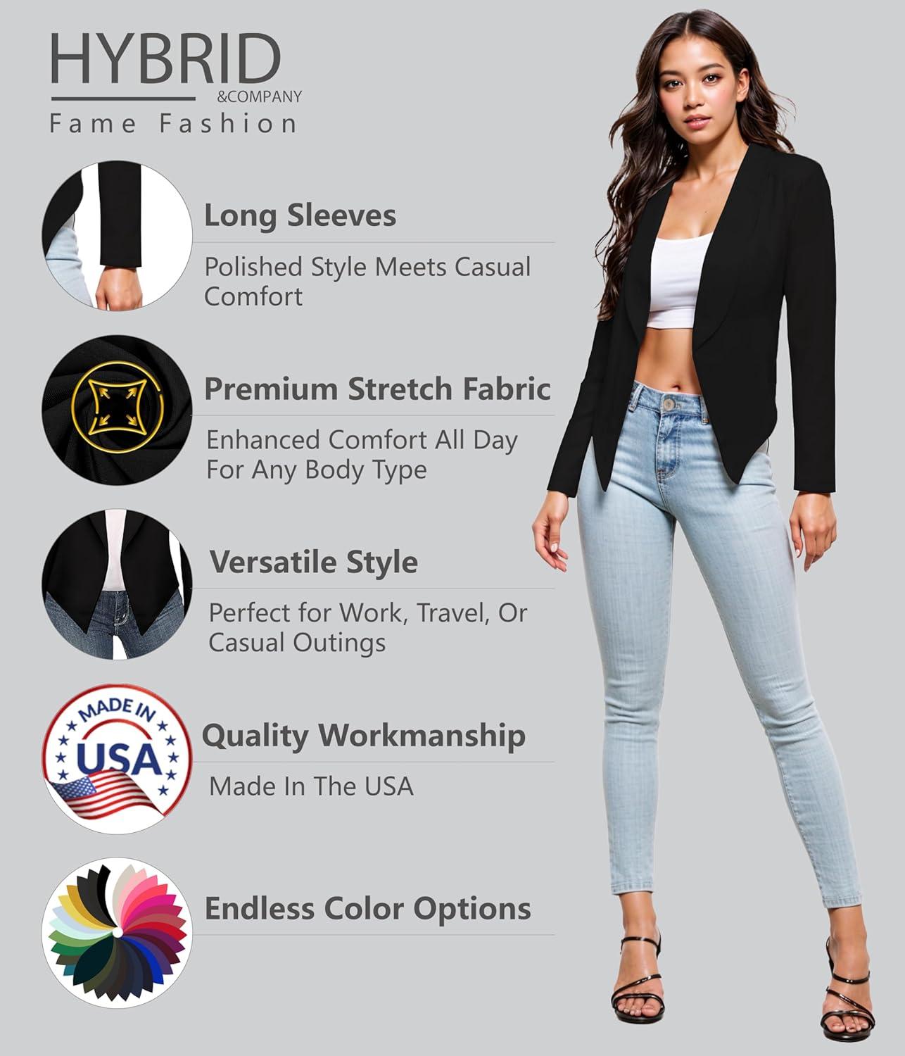 Be the first to review “Hybrid & Company Lightweight Open Front Cardigan Classic Ruched Sleeve Work Office Blazer Suit Jackets(Black-9789)”