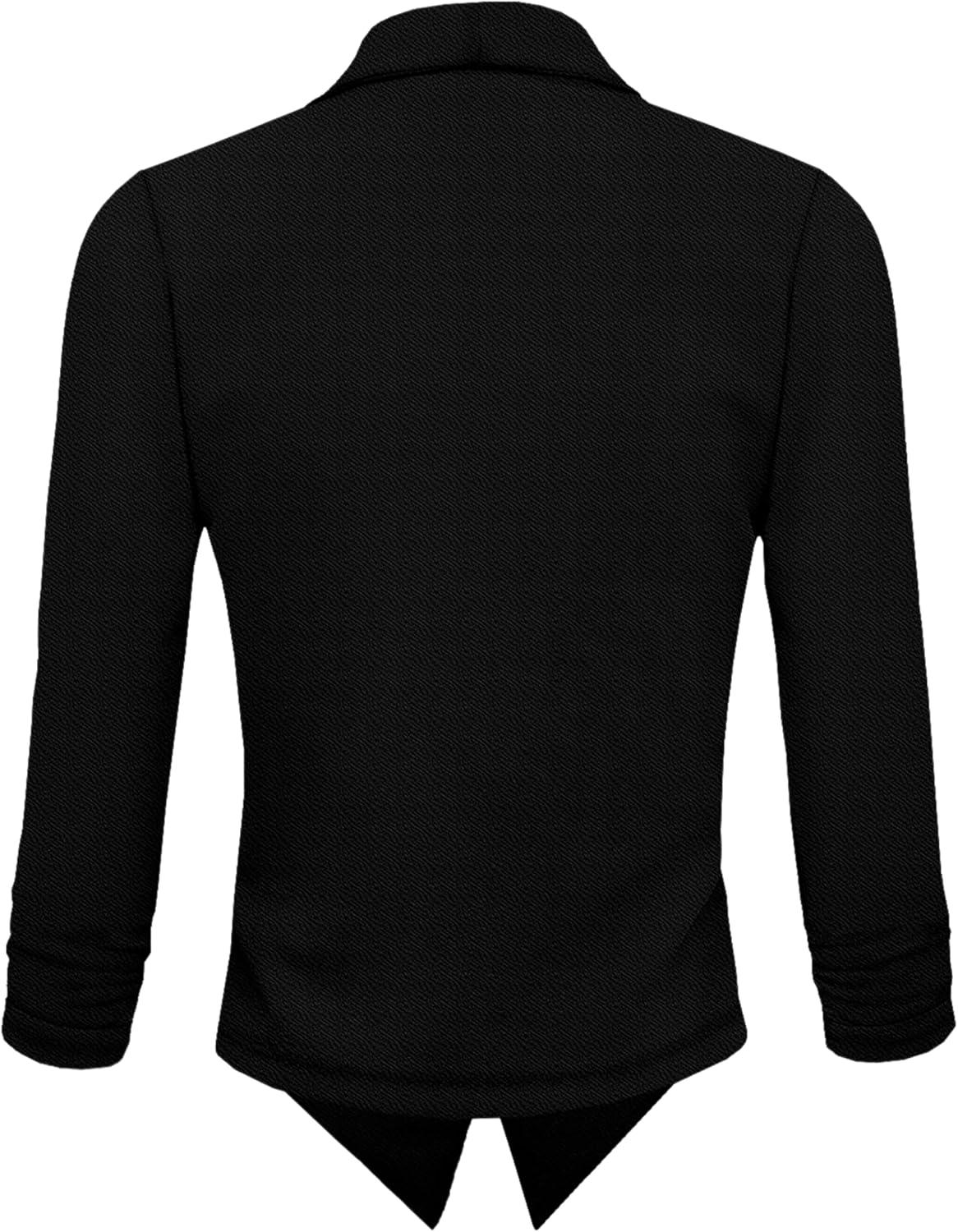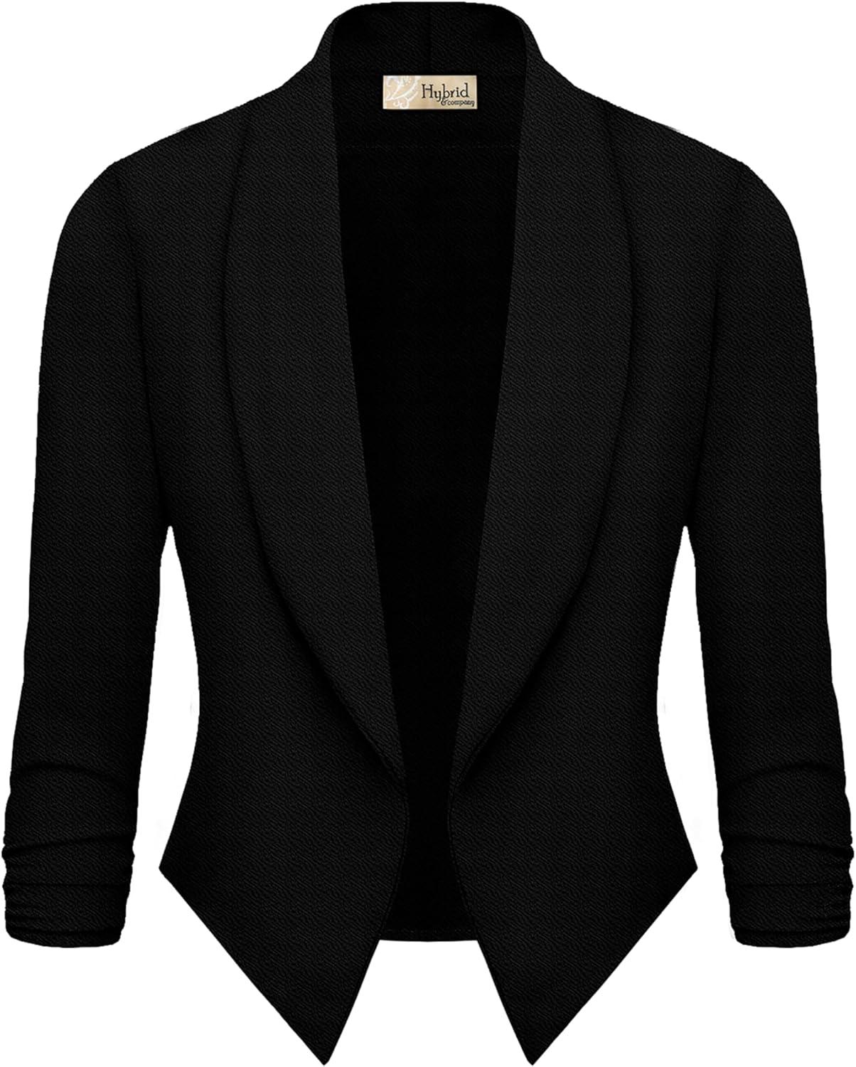 Hybrid & Company Lightweight Open Front Cardigan Classic Ruched Sleeve Work Office Blazer Suit Jackets(Black)