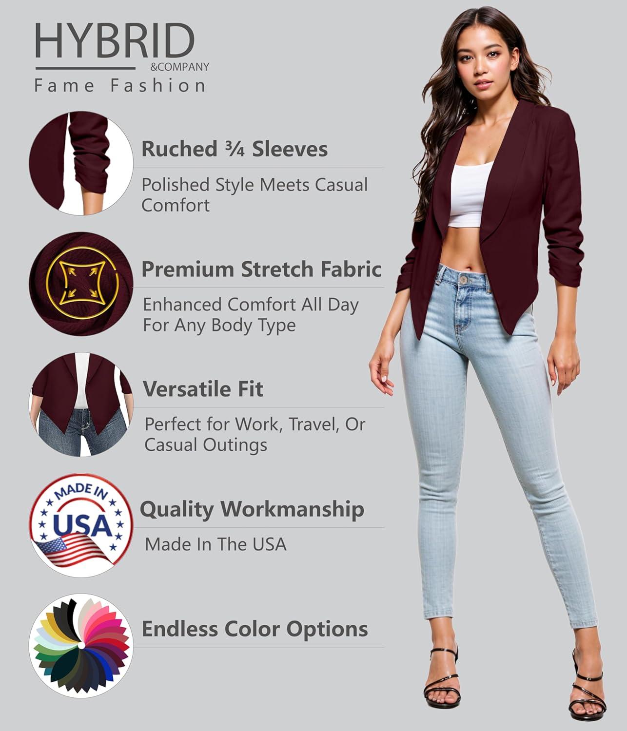 Be the first to review “Hybrid & Company Lightweight Open Front Cardigan Classic Ruched Sleeve Work Office Blazer Suit Jackets(Burgundy)”