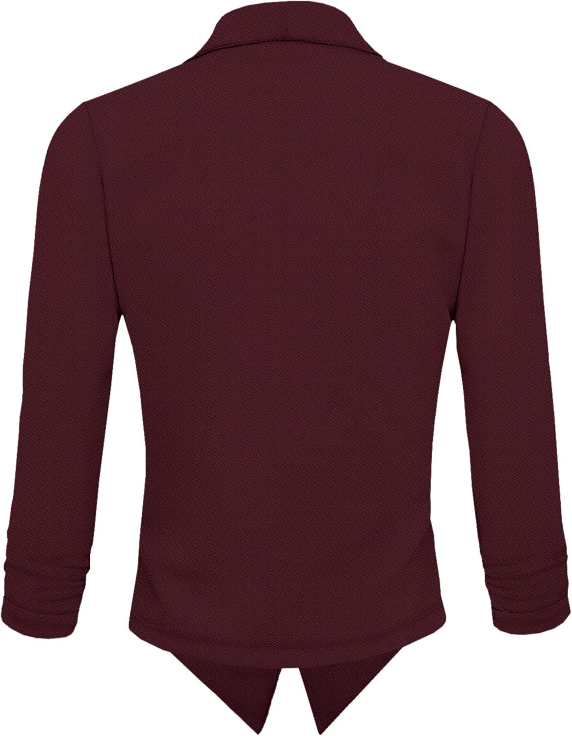 image:imageHybrid amp Company Lightweight Open Front Cardigan Classic Ruched Sleeve Work Office Blazer Suit JacketsBurgundy