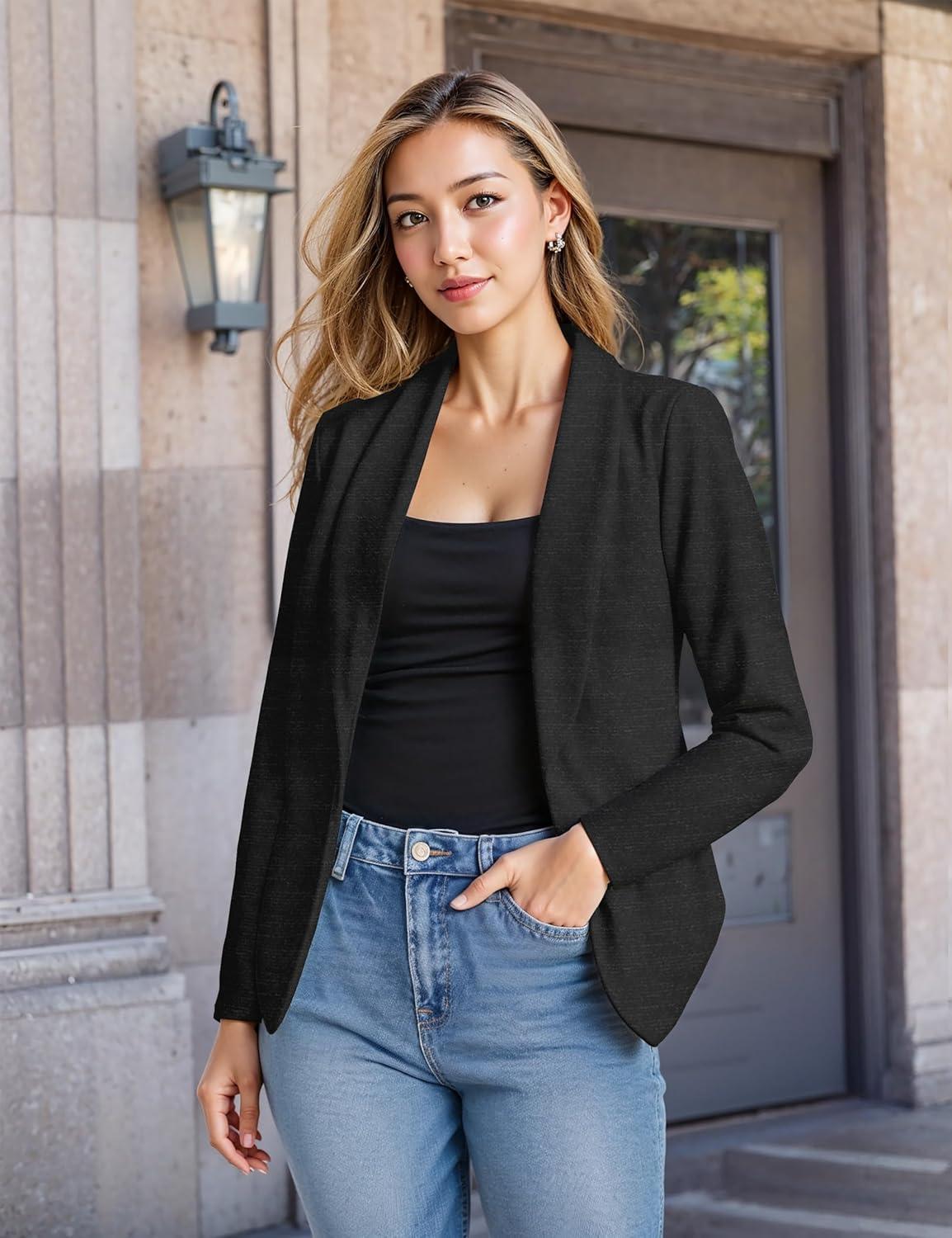 Hybrid & Company Lightweight Open Front Cardigan Classic Ruched Sleeve Work Office Blazer Suit Jackets(Charcoal-9789)