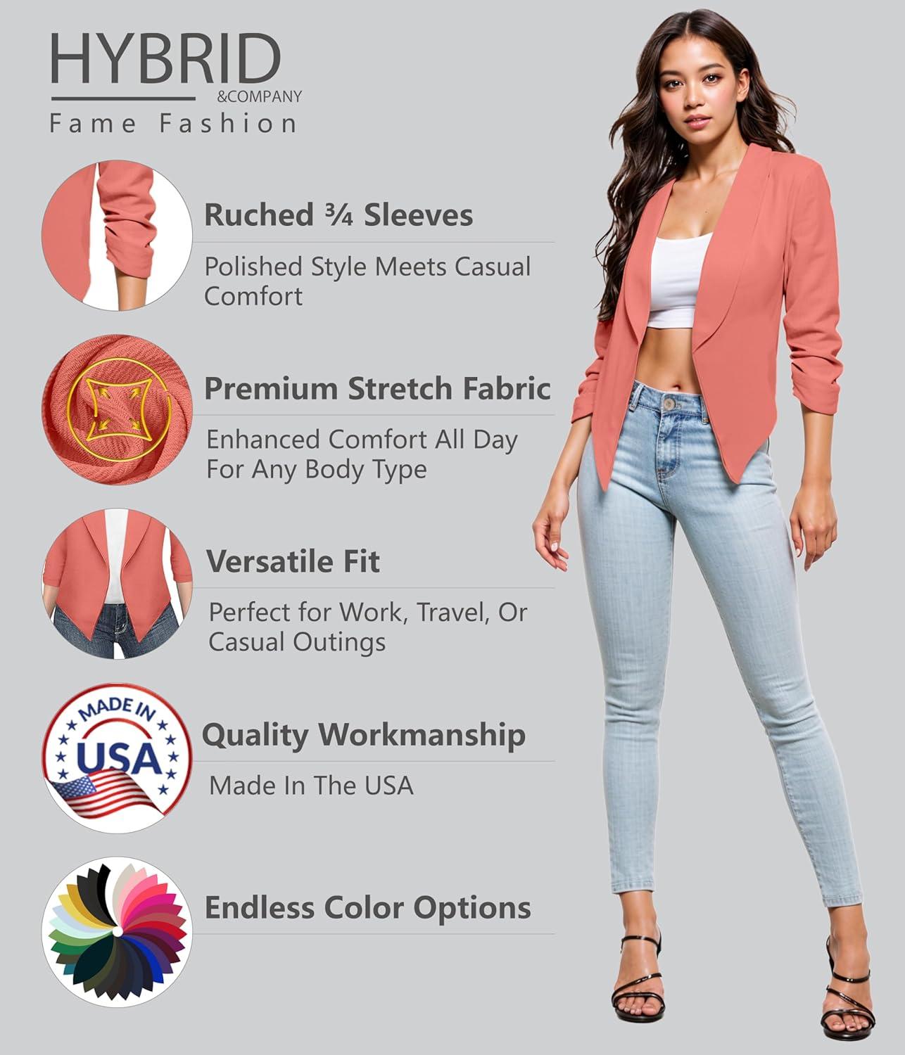 Be the first to review “Hybrid & Company Lightweight Open Front Cardigan Classic Ruched Sleeve Work Office Blazer Suit Jackets(Coral)”