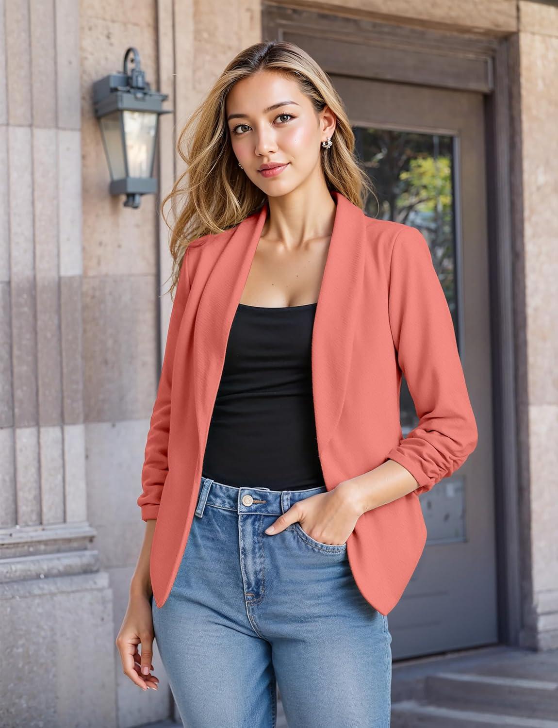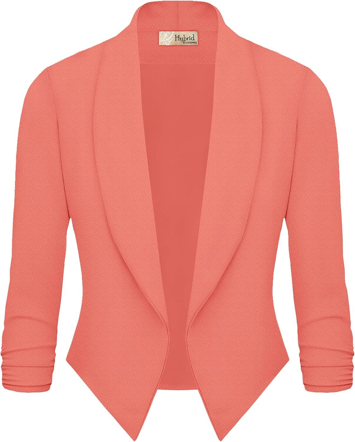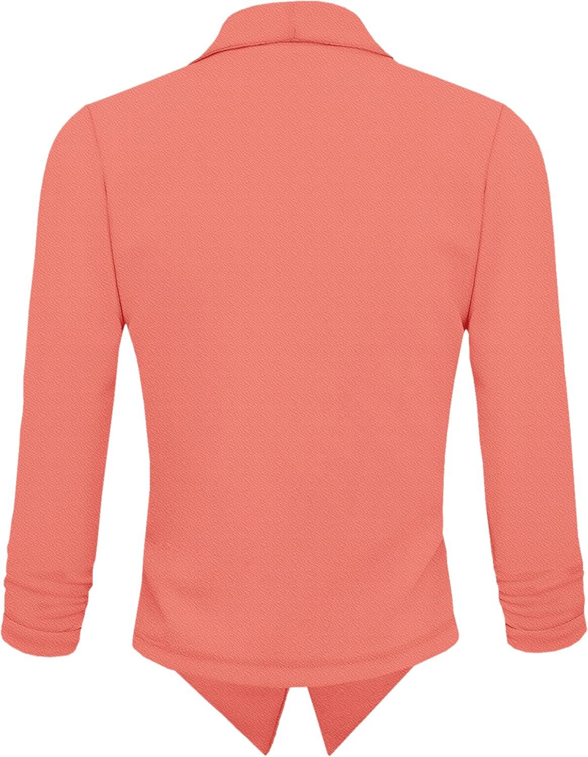 Hybrid & Company Lightweight Open Front Cardigan Classic Ruched Sleeve Work Office Blazer Suit Jackets(Coral)