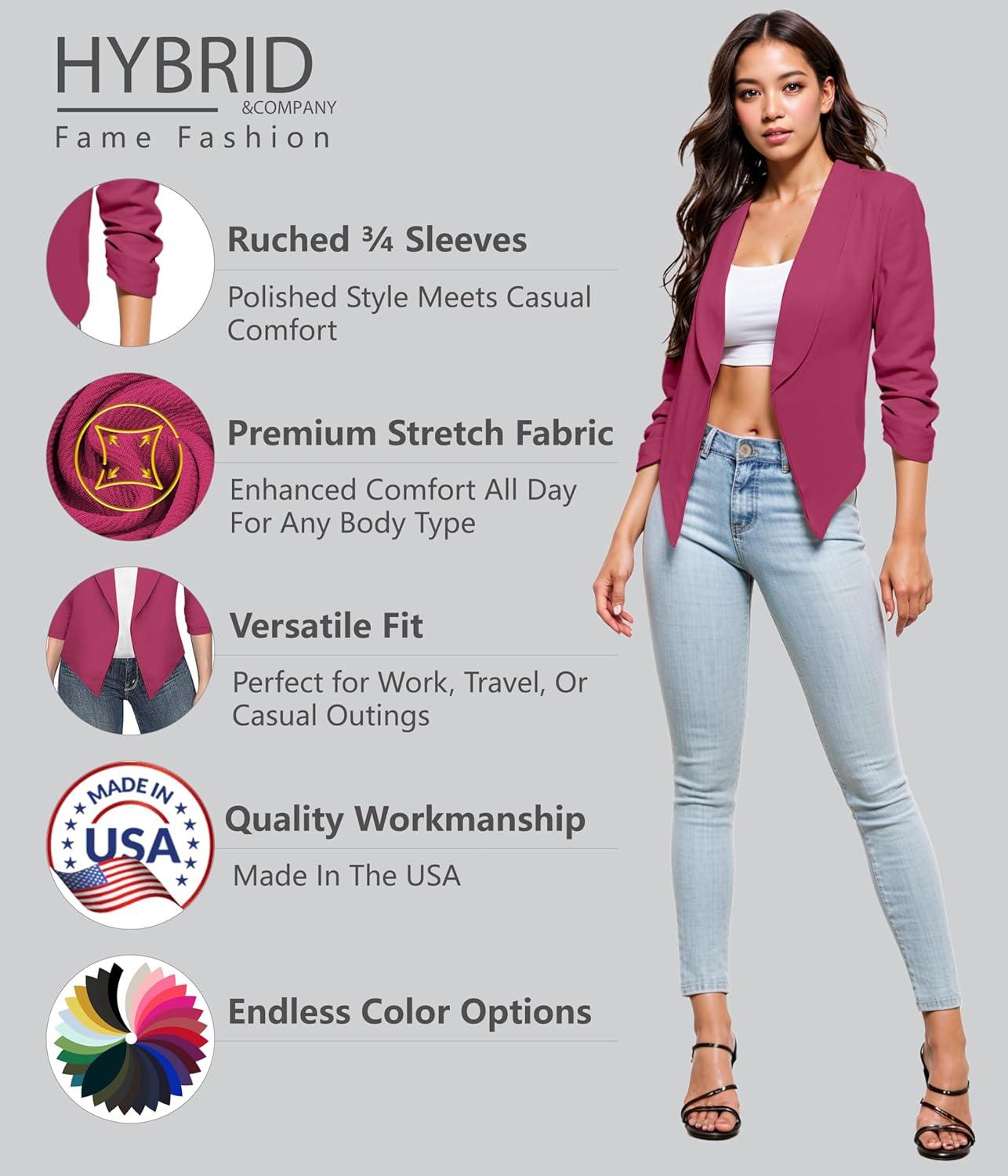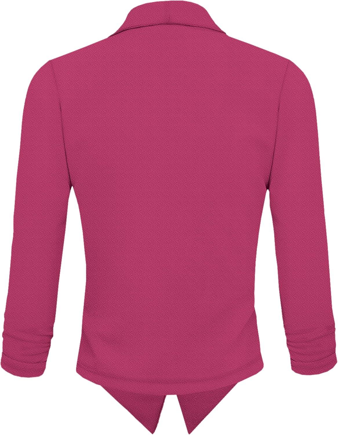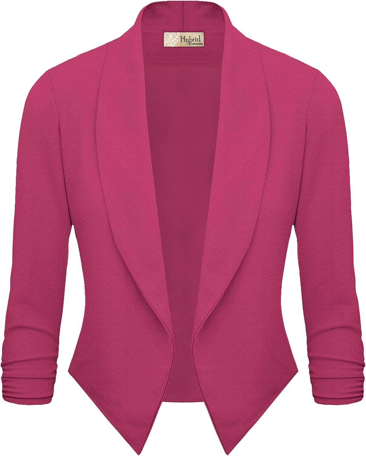 Hybrid & Company Lightweight Open Front Cardigan Classic Ruched Sleeve Work Office Blazer Suit Jackets(Fuchsia)