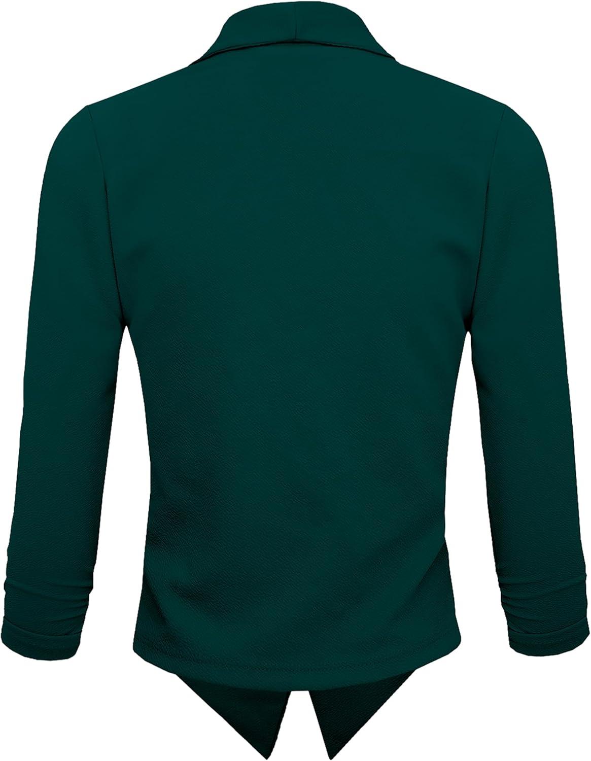Hybrid & Company Lightweight Open Front Cardigan Classic Ruched Sleeve Work Office Blazer Suit Jackets(Kgreen)