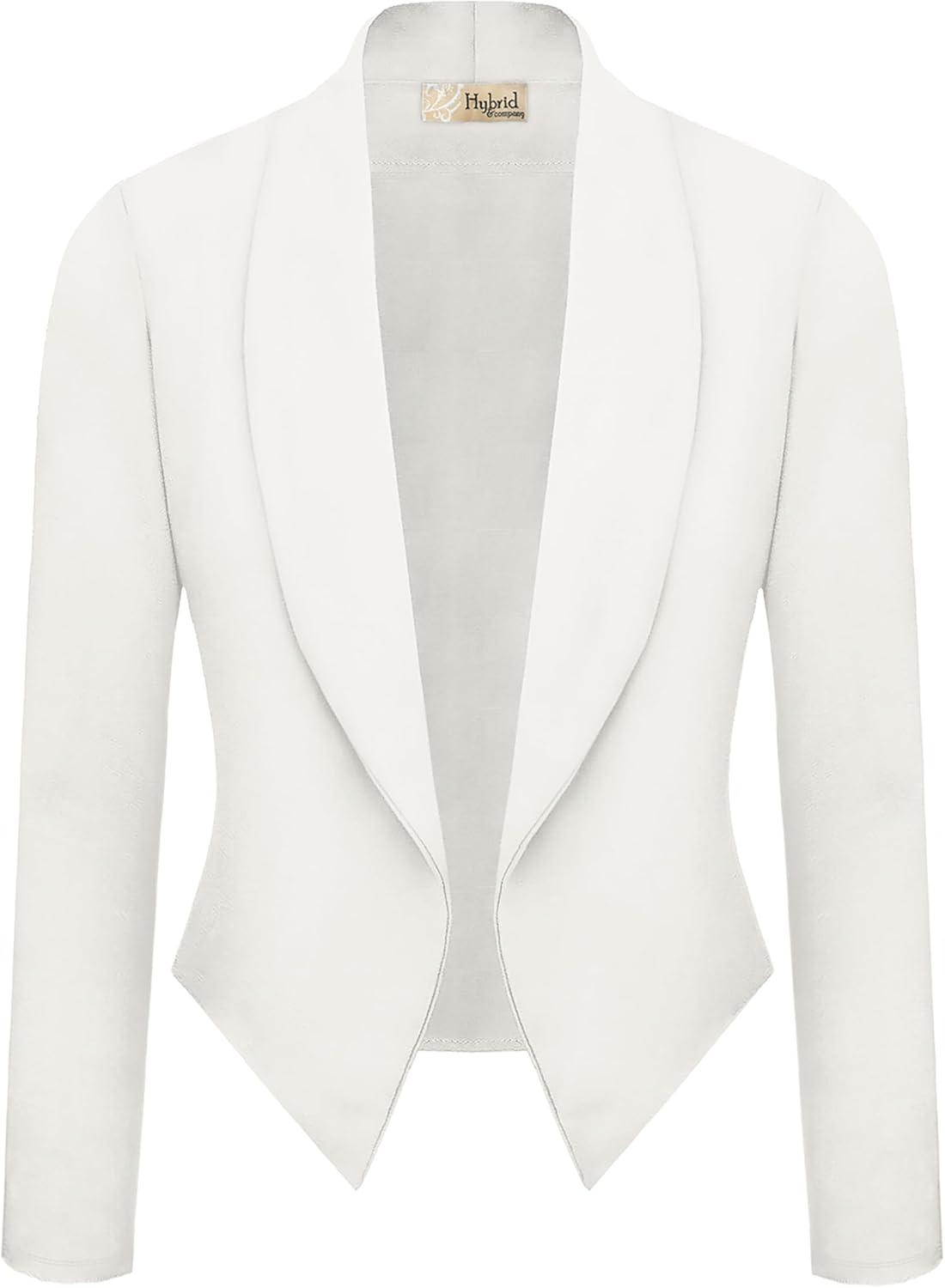 Hybrid & Company Lightweight Open Front Cardigan Classic Ruched Sleeve Work Office Blazer Suit Jackets(Ivory-9789)