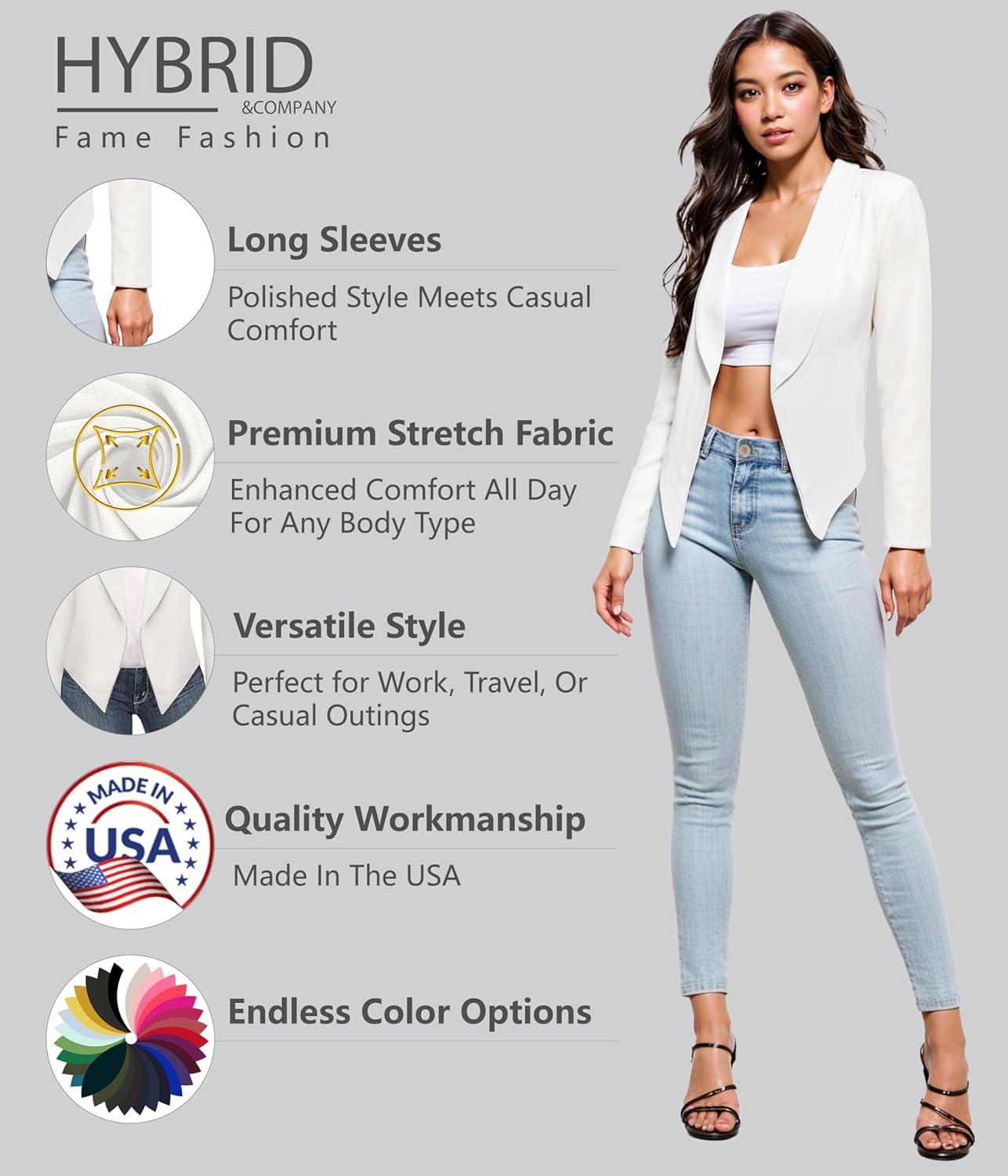 Hybrid & Company Lightweight Open Front Cardigan Classic Ruched Sleeve Work Office Blazer Suit Jackets(Black-9789)