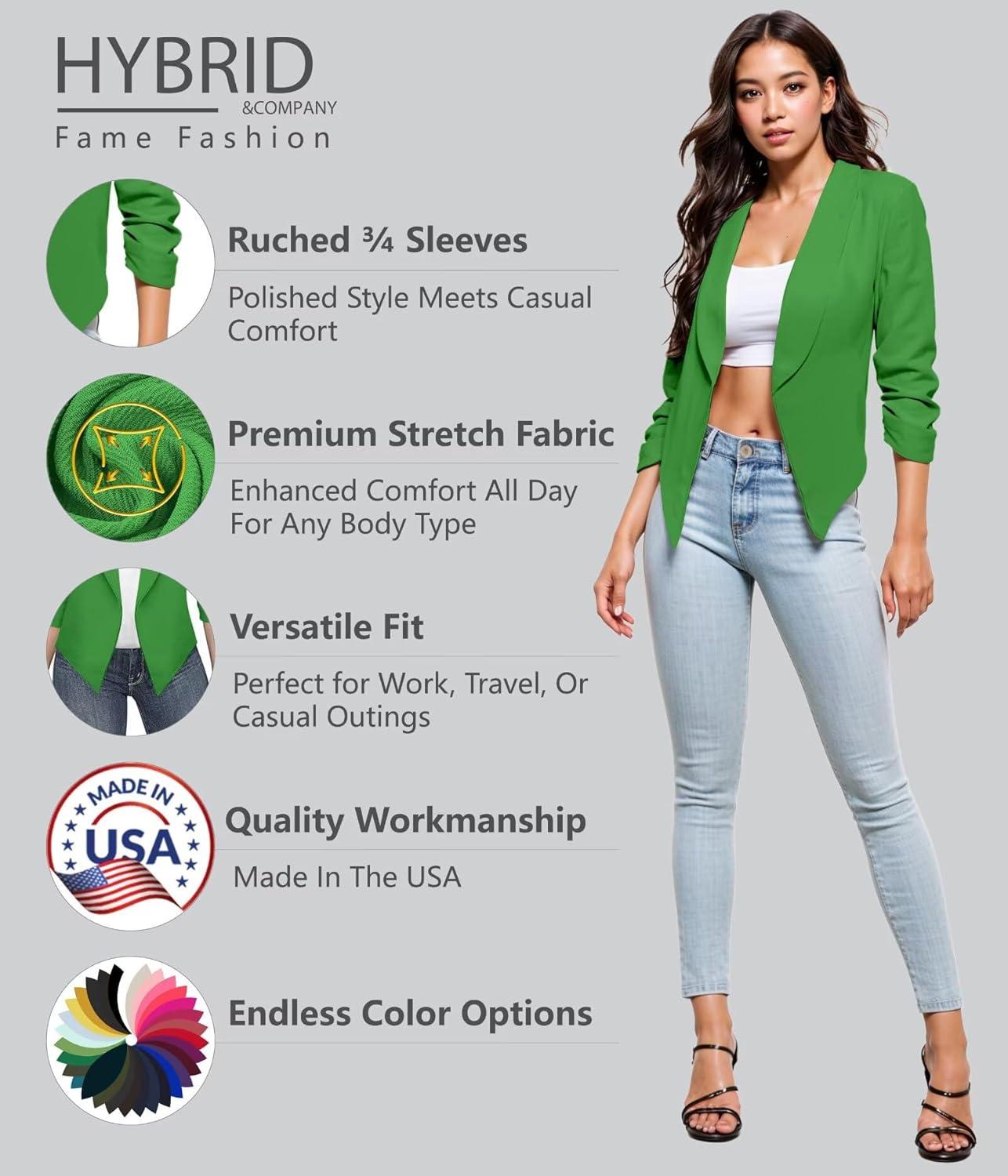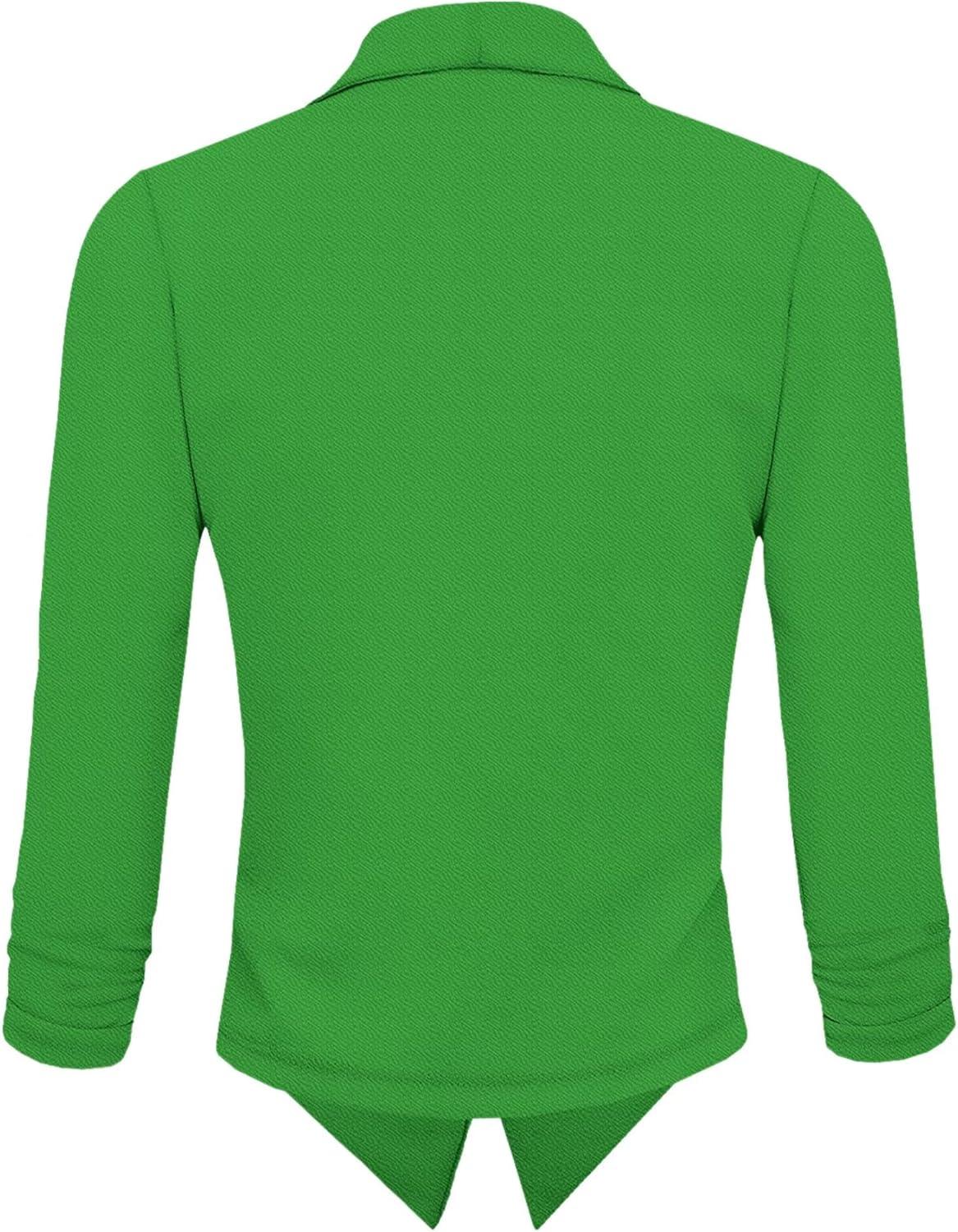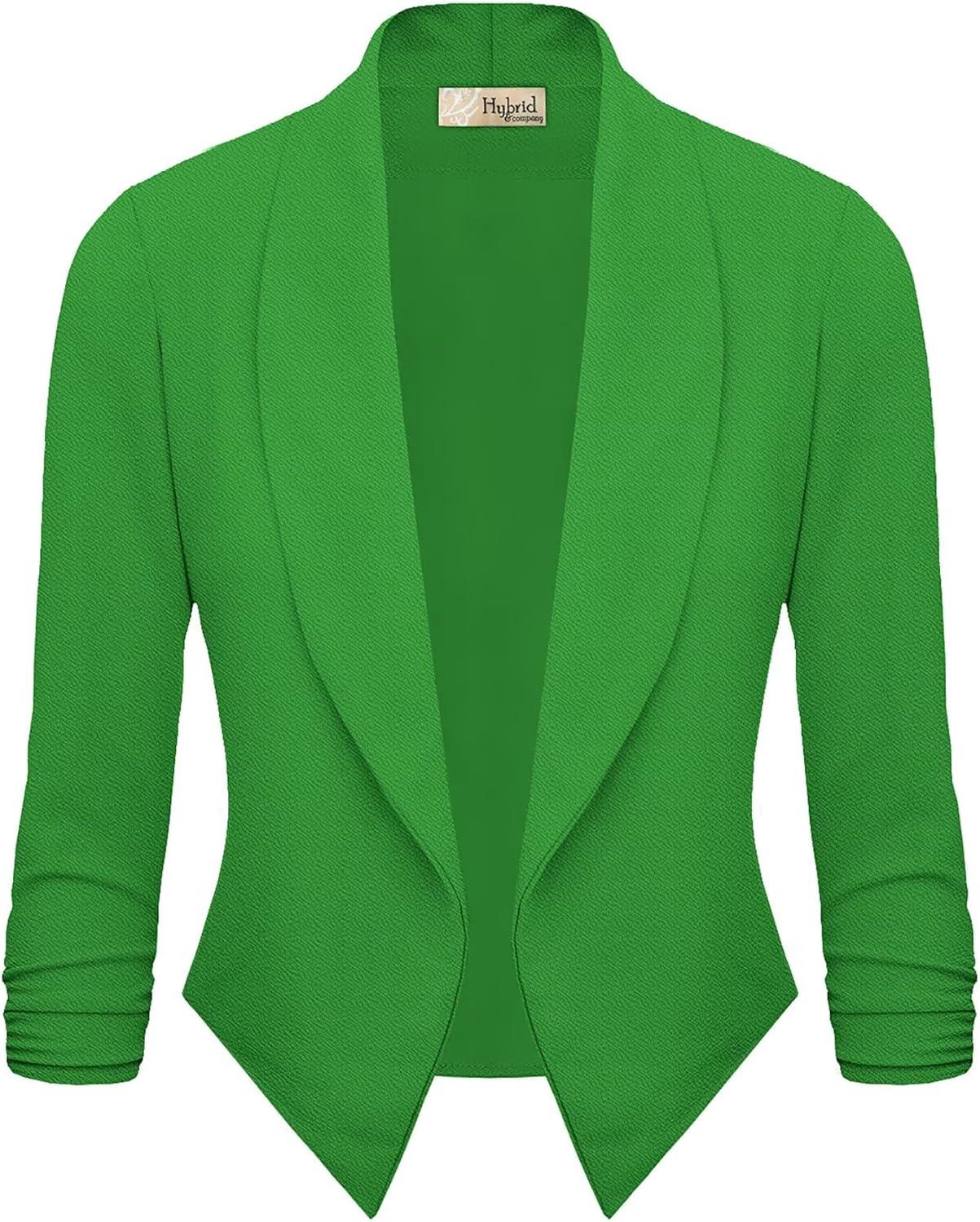 Hybrid & Company Lightweight Open Front Cardigan Classic Ruched Sleeve Work Office Blazer Suit Jackets(Kgreen)