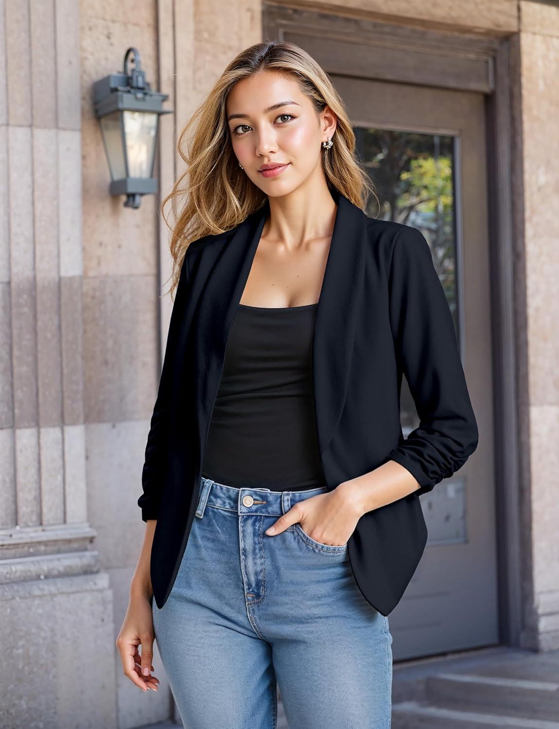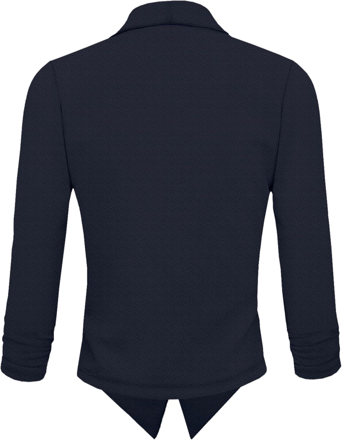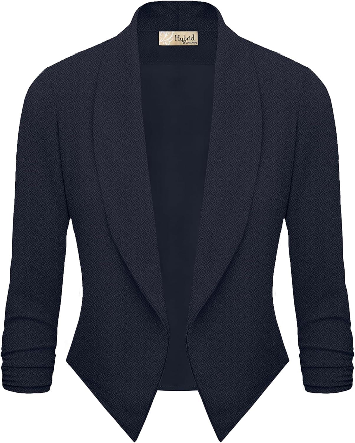 Hybrid & Company Lightweight Open Front Cardigan Classic Ruched Sleeve Work Office Blazer Suit Jackets(Navy)
