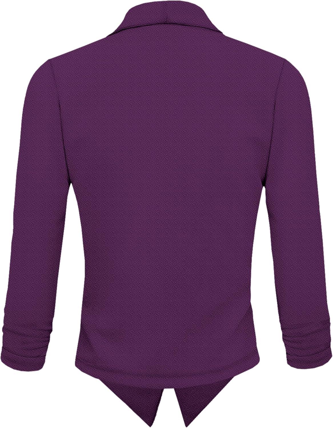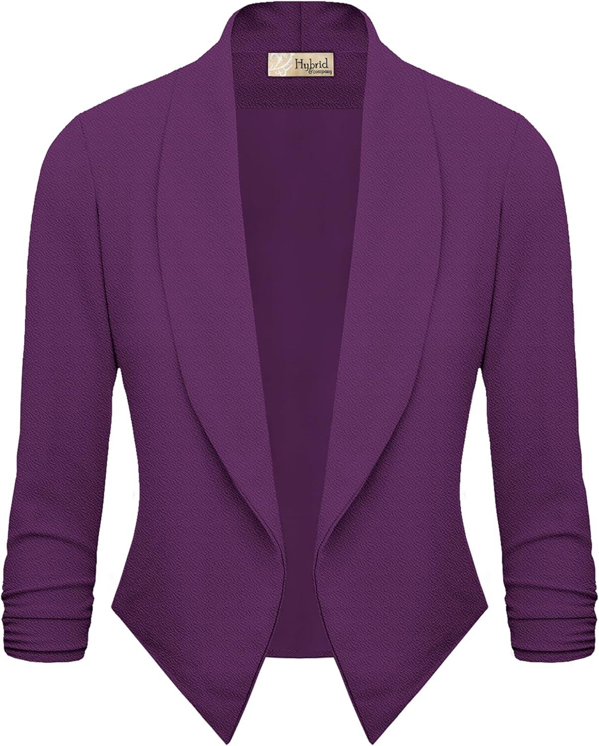 Hybrid & Company Lightweight Open Front Cardigan Classic Ruched Sleeve Work Office Blazer Suit Jackets(Plum)