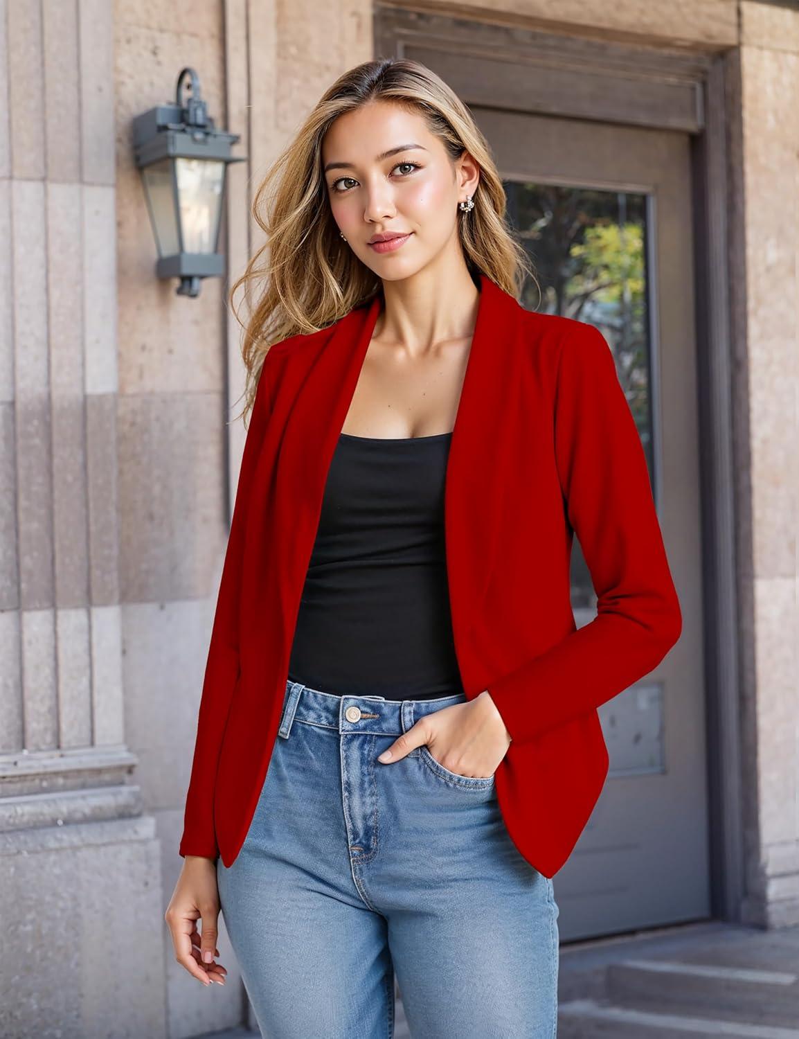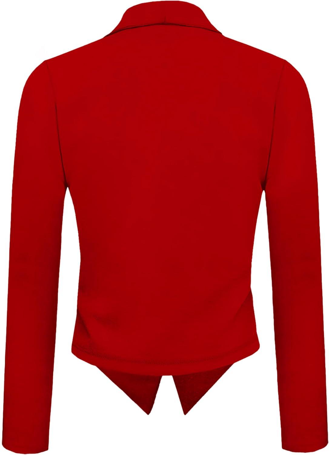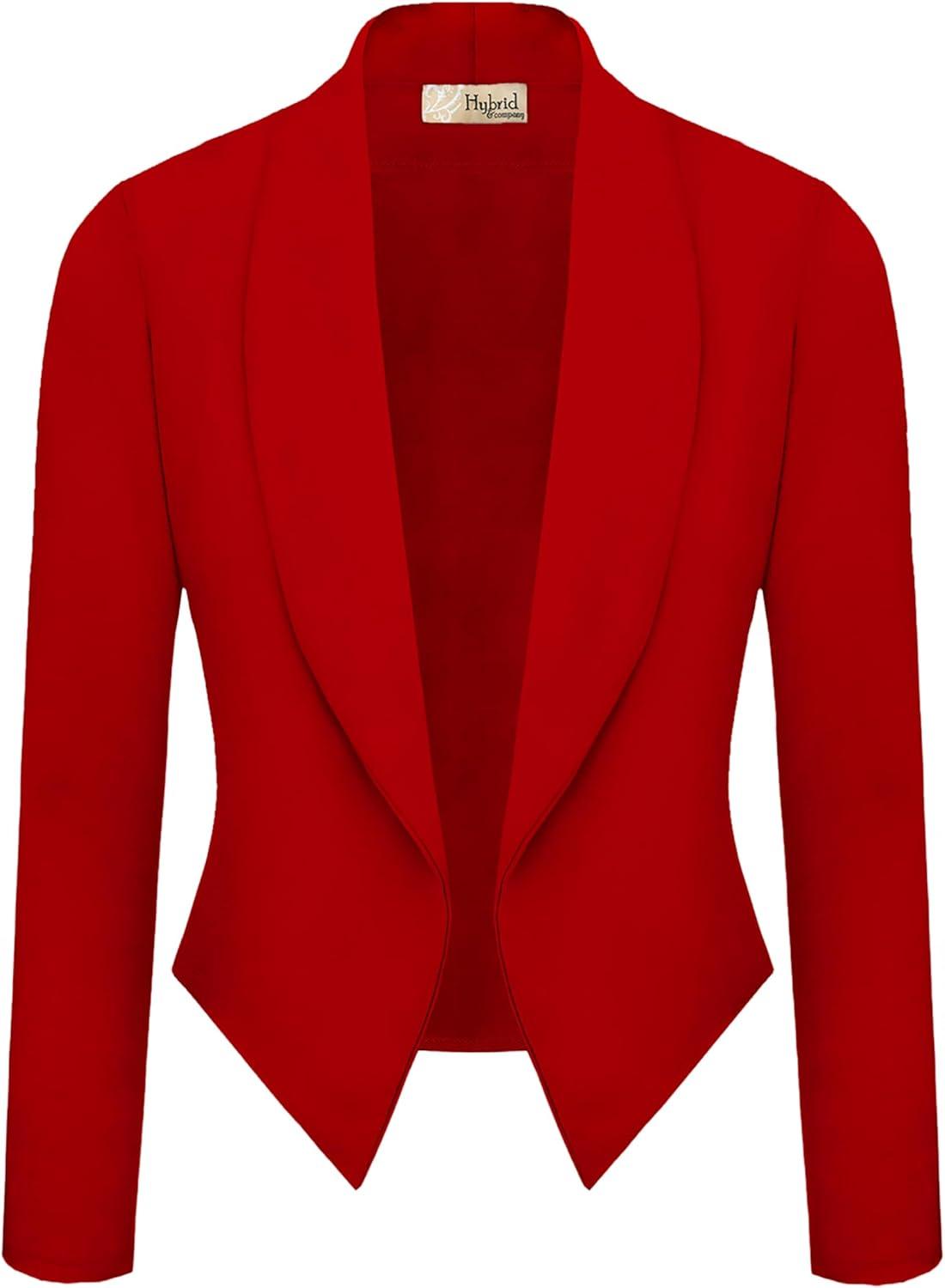 Hybrid & Company Lightweight Open Front Cardigan Classic Ruched Sleeve Work Office Blazer Suit Jackets(Red-9789)