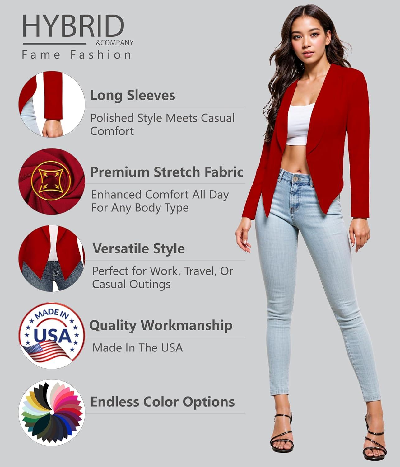 Be the first to review “Hybrid & Company Lightweight Open Front Cardigan Classic Ruched Sleeve Work Office Blazer Suit Jackets(Red-9789)”