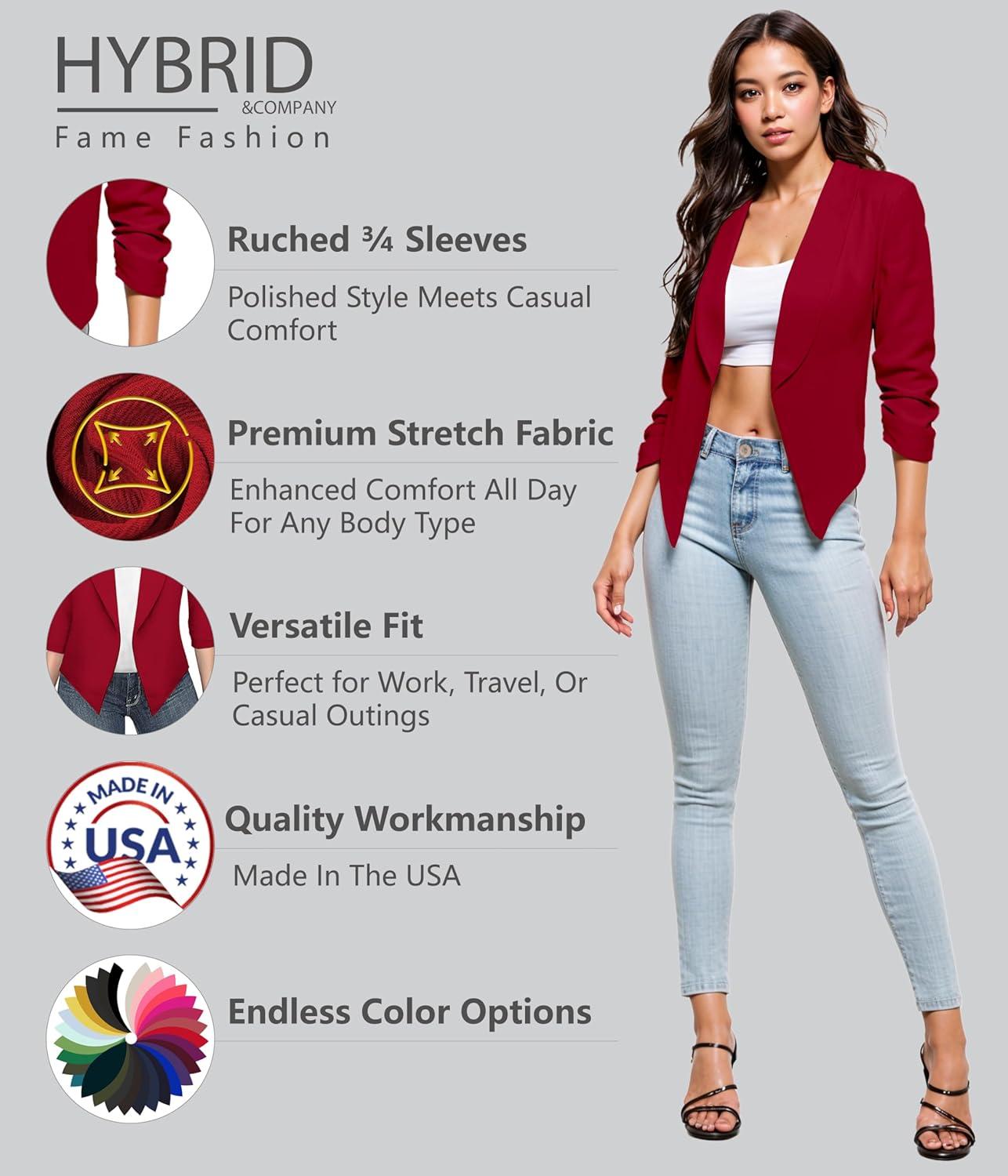 Be the first to review “Hybrid & Company Lightweight Open Front Cardigan Classic Ruched Sleeve Work Office Blazer Suit Jackets(Red)”