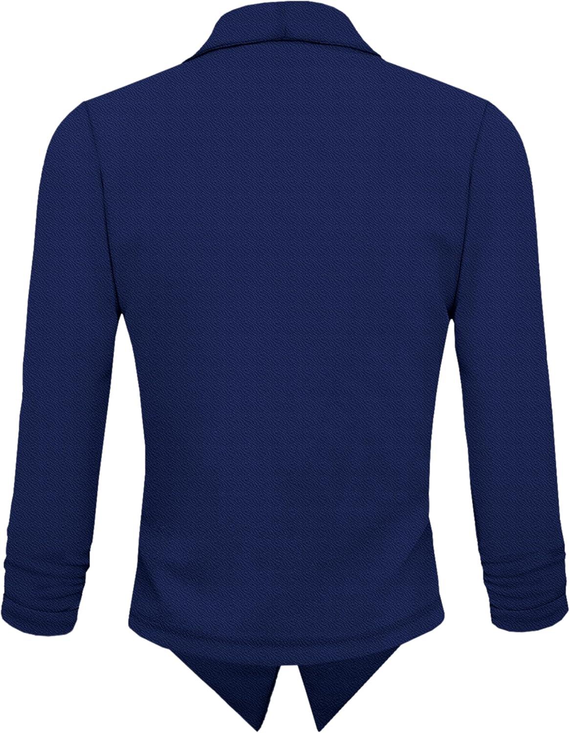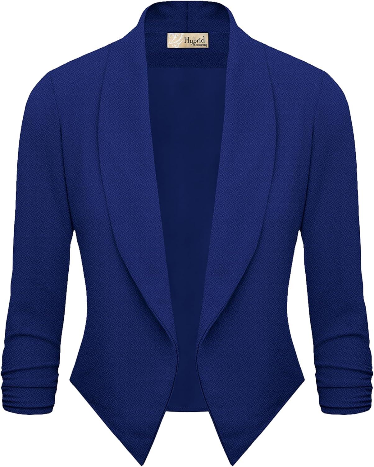 Hybrid & Company Lightweight Open Front Cardigan Classic Ruched Sleeve Work Office Blazer Suit Jackets(Royal)