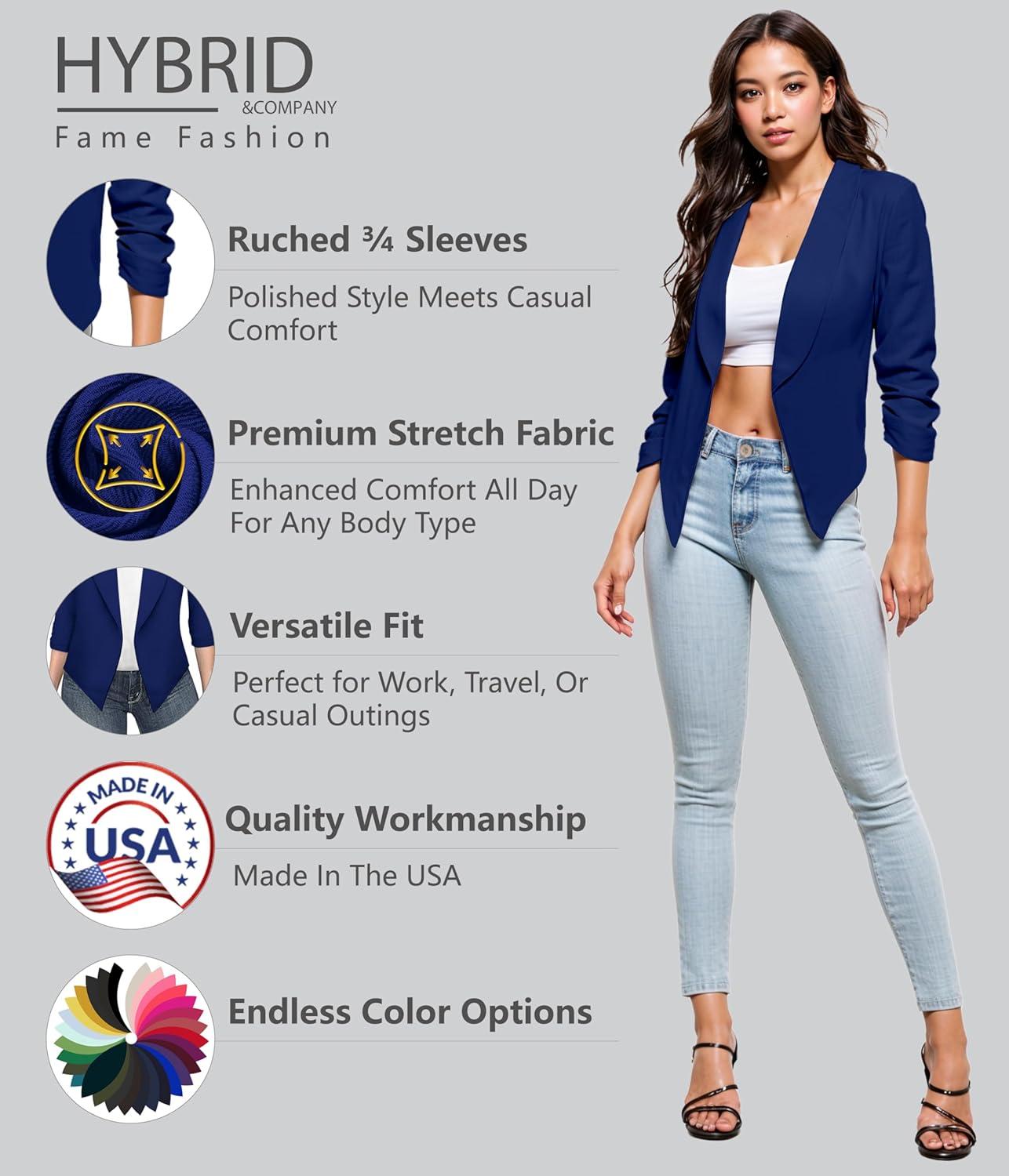 Be the first to review “Hybrid & Company Lightweight Open Front Cardigan Classic Ruched Sleeve Work Office Blazer Suit Jackets(Royal)”