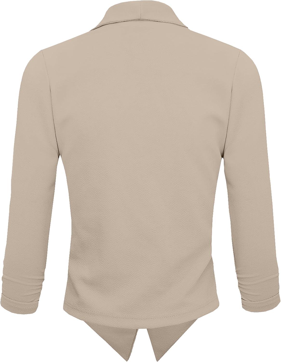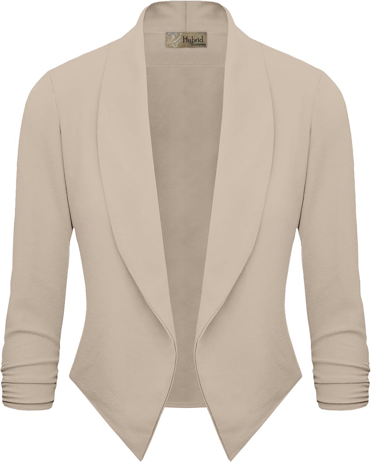 Hybrid & Company Lightweight Open Front Cardigan Classic Ruched Sleeve Work Office Blazer Suit Jackets(Beige)