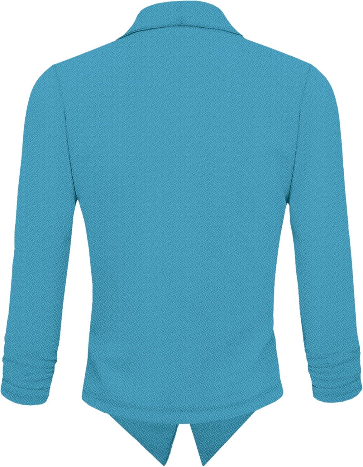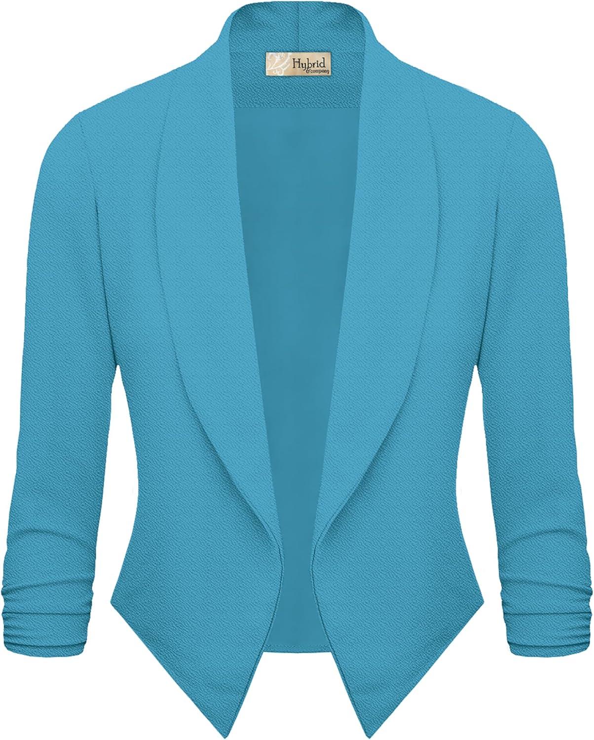 Hybrid & Company Lightweight Open Front Cardigan Classic Ruched Sleeve Work Office Blazer Suit Jackets(Turquoise/)