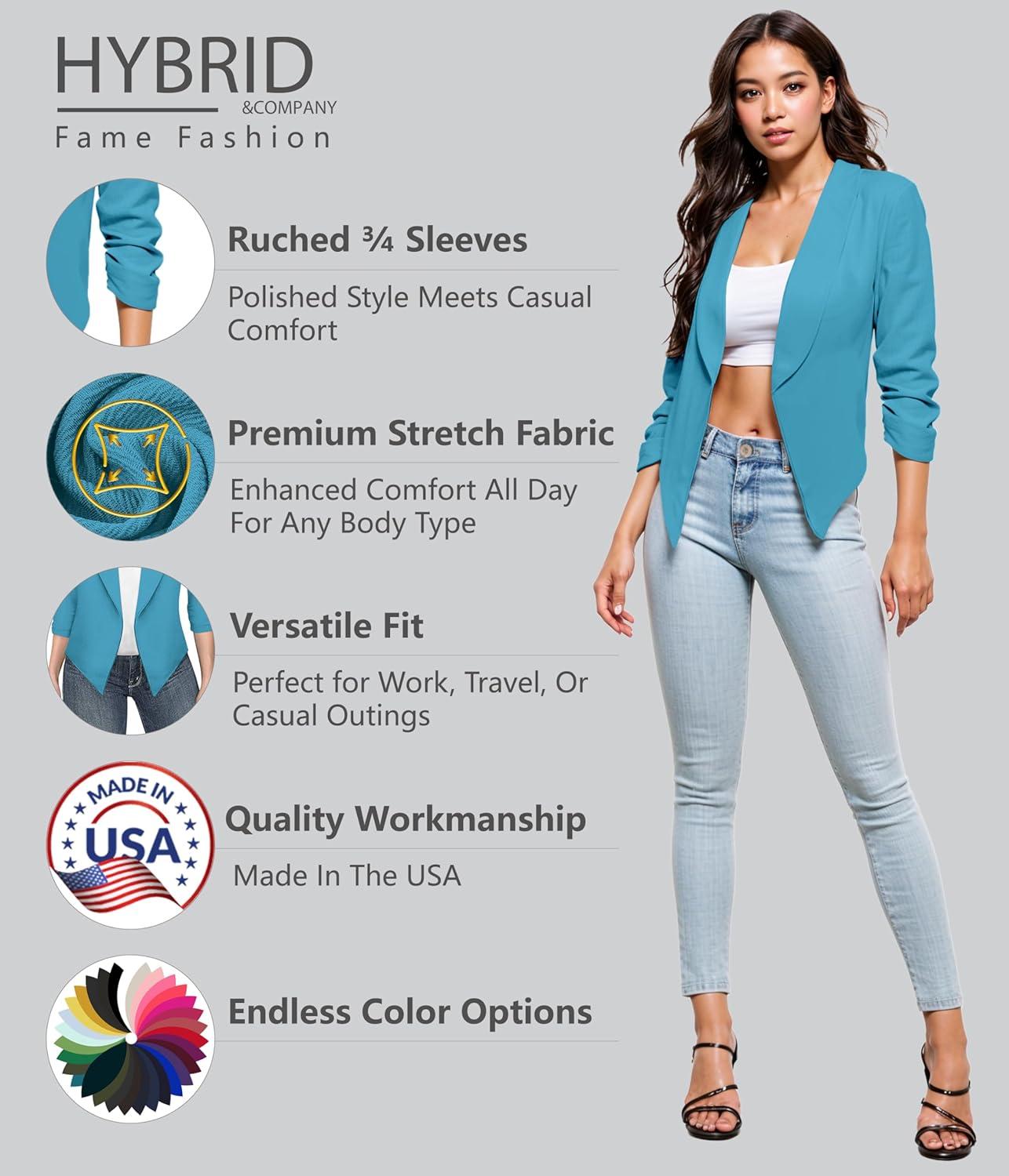 Be the first to review “Hybrid & Company Lightweight Open Front Cardigan Classic Ruched Sleeve Work Office Blazer Suit Jackets(Turquoise/)”