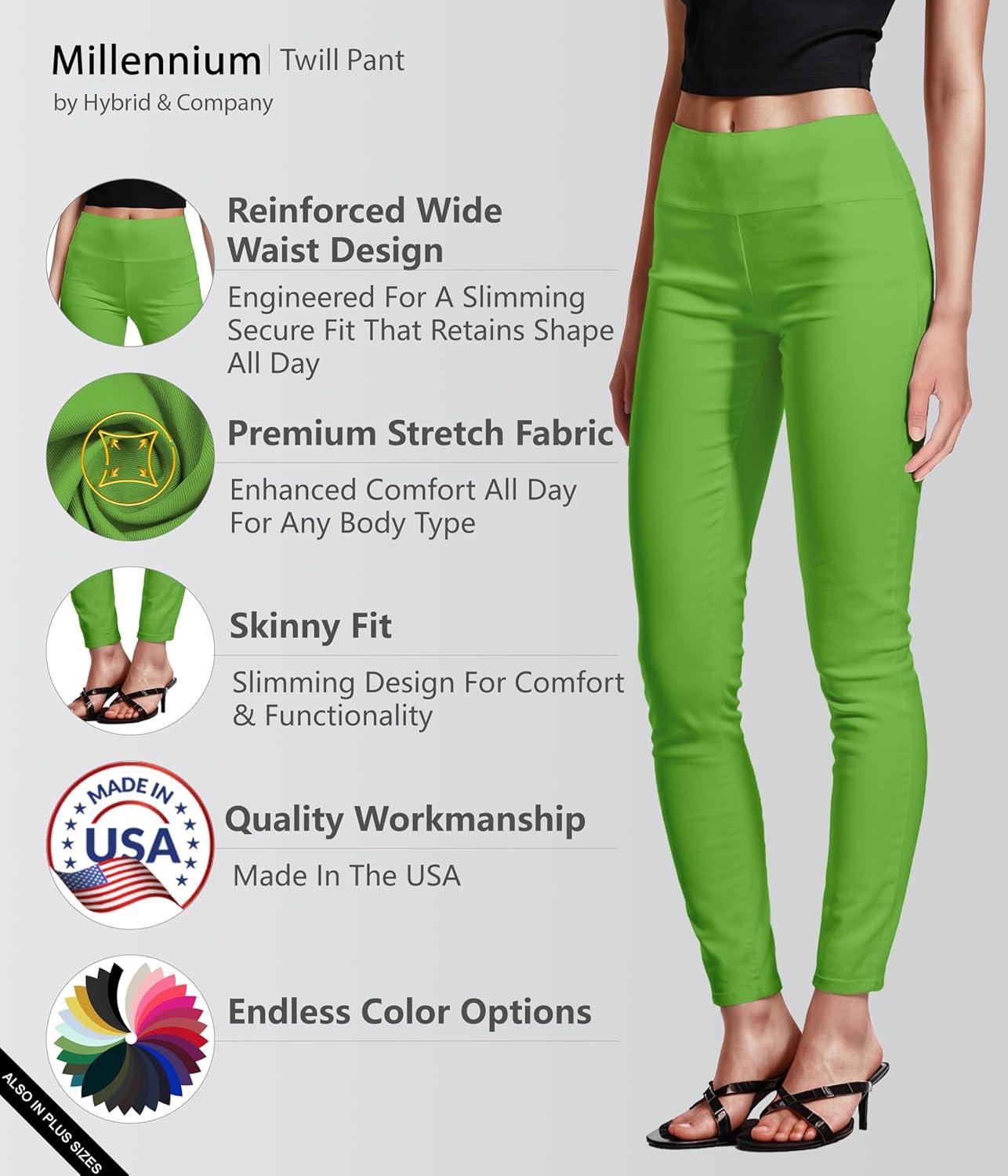 Hybrid & Company Super Comfy Stretch with Full Elastic Waist Pull On Millennium Twill Pant(Lime)