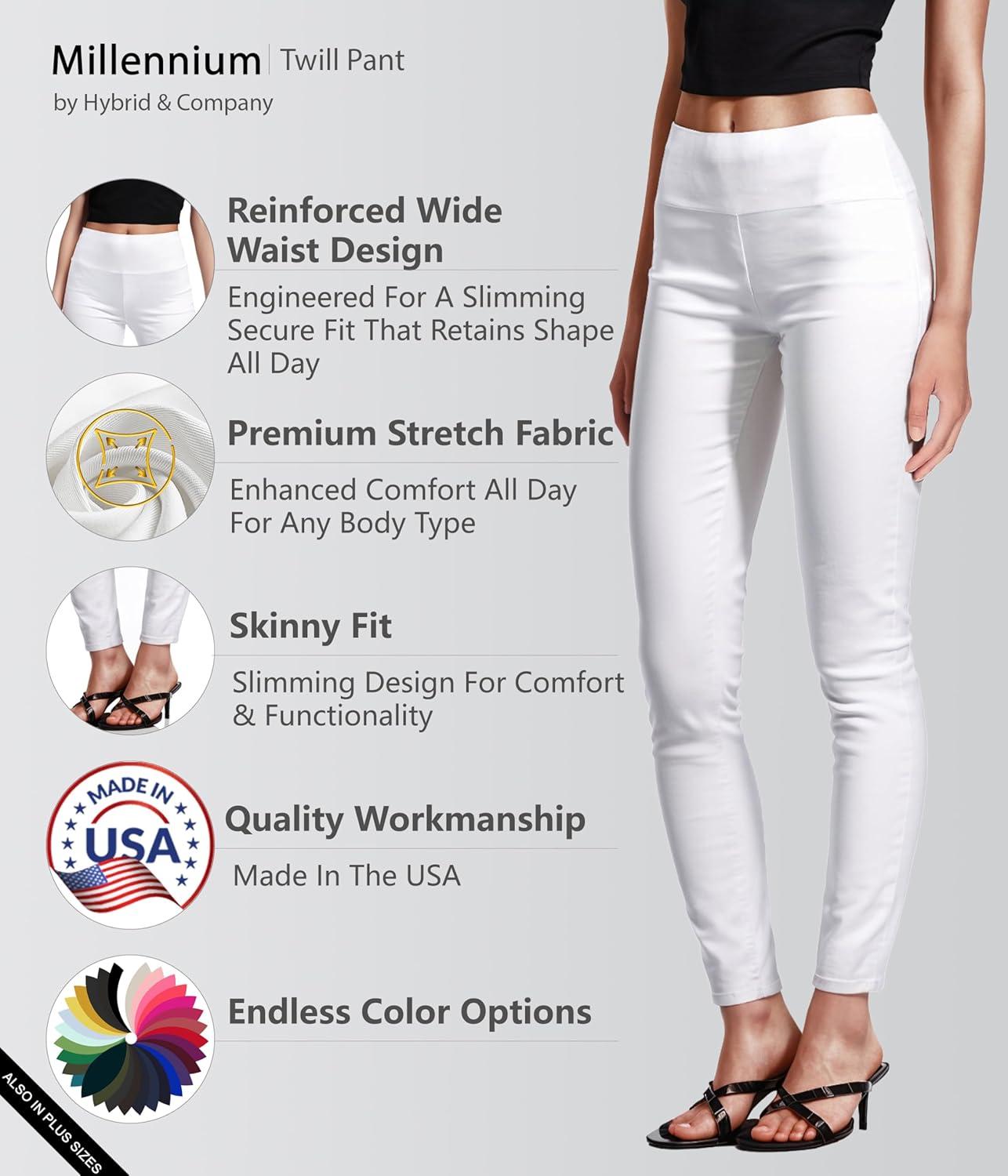 image:imageHybrid amp Company Super Comfy Stretch with Full Elastic Waist Pull On Millennium Twill PantWhite
