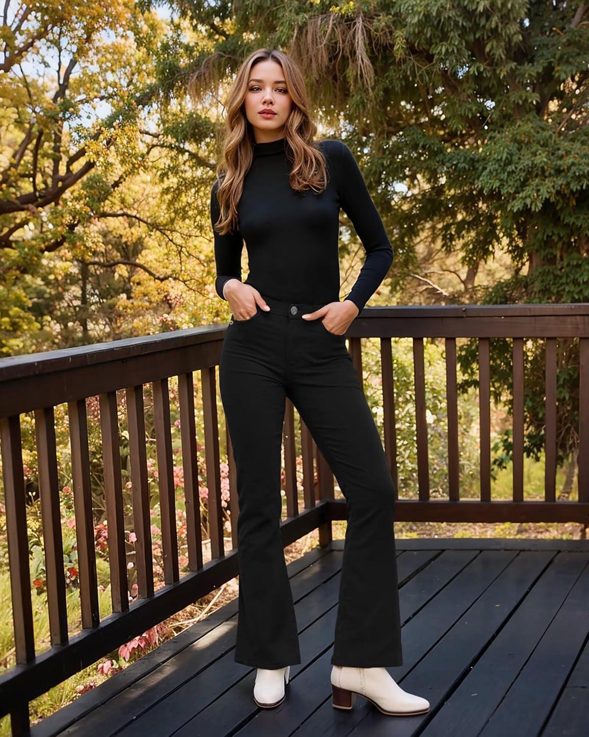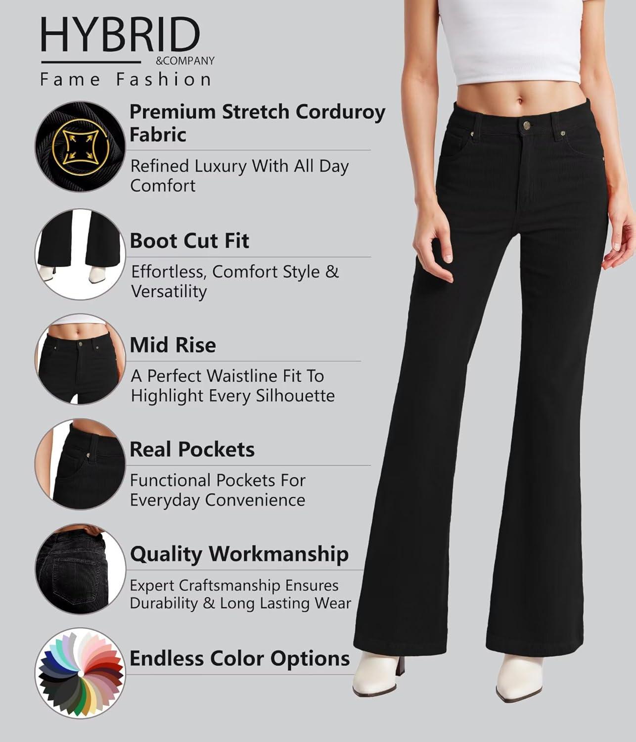 Hybrid & Company Super Comfy Stretch Women 5 Pockets Corduroy Boot Cut Pants(P21951bl-black)