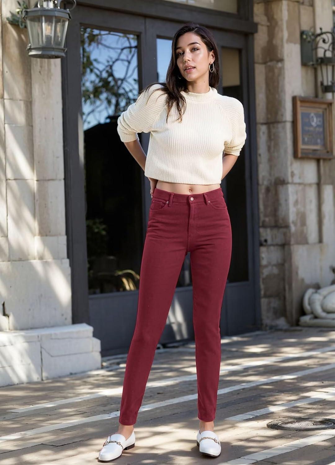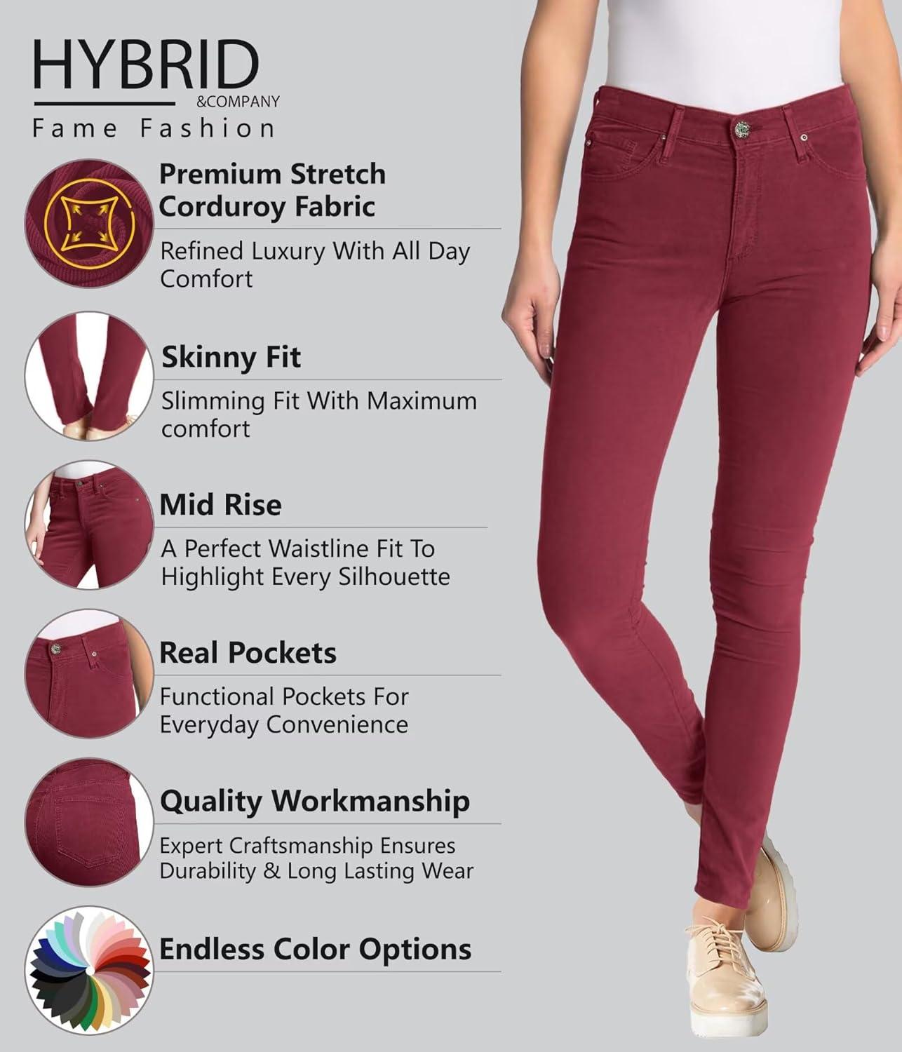 Hybrid & Company Super Comfy Stretch Women 5 Pockets Corduroy Skinny Pants(Berry)