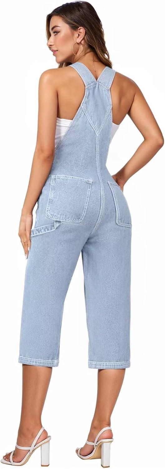 Hybrid & Company Women Denim Shorts Rompers Sleeveless Adjustable Strap Overalls Cross Back Jumpsuit(Qvj156998-light Wash)