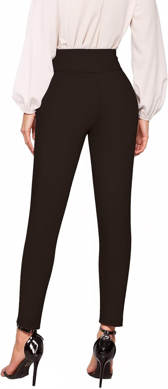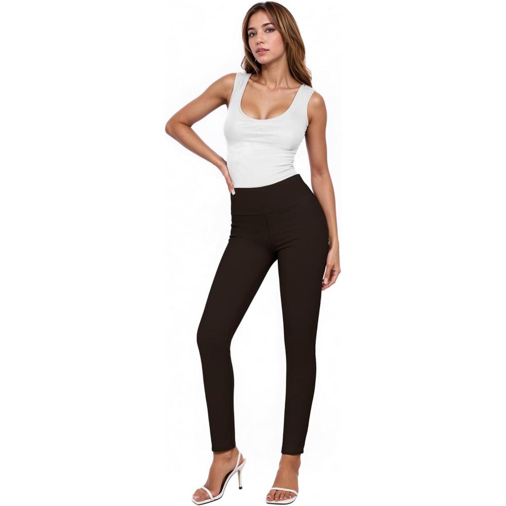 Hybrid & Company Women Stretch Skinny Dress Pants Nylon Ponte Pull On Office Leggings Trousers(1073t-brown)