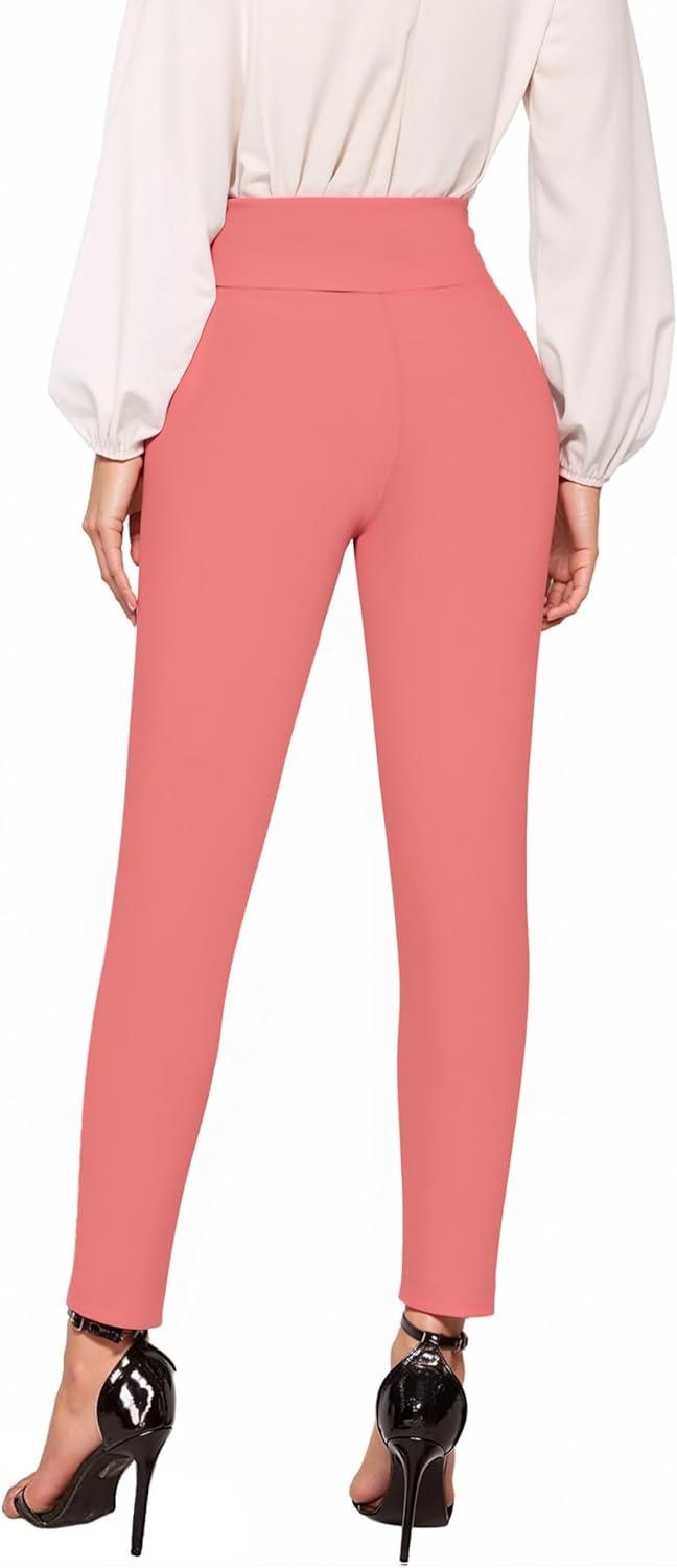 Hybrid & Company Women Stretch Skinny Dress Pants Nylon Ponte Pull On Office Leggings Trousers(1073t-coral)