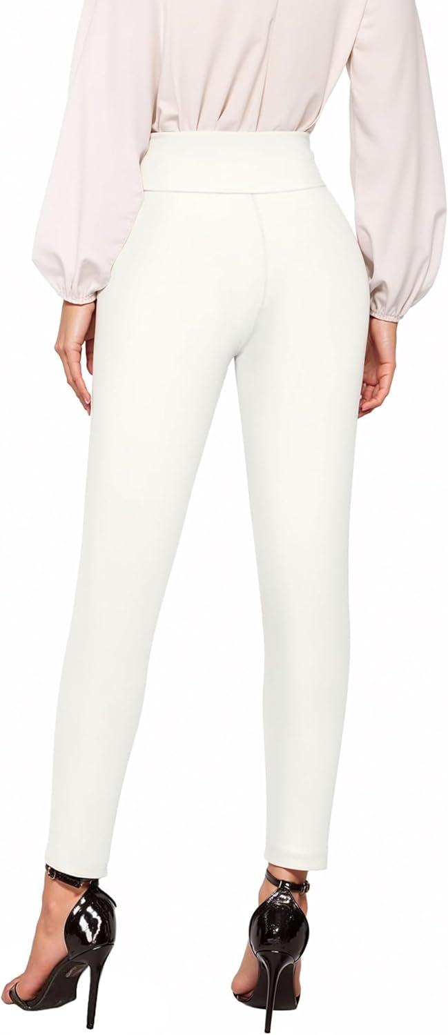 Hybrid & Company Women Stretch Skinny Dress Pants Nylon Ponte Pull On Office Leggings Trousers(1073t-ivory)