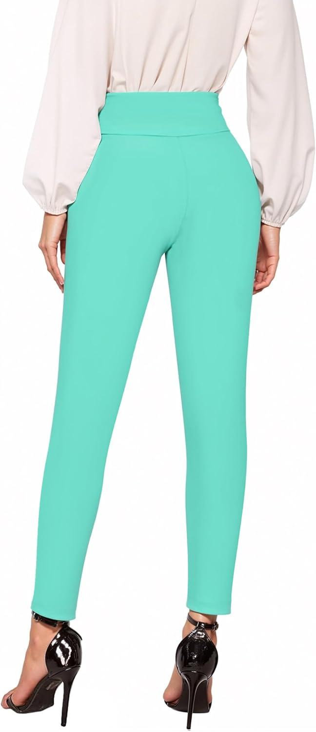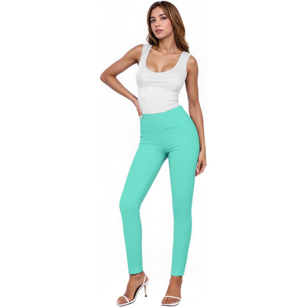 Hybrid & Company Women Stretch Skinny Dress Pants Nylon Ponte Pull On Office Leggings Trousers(1073t-mint)