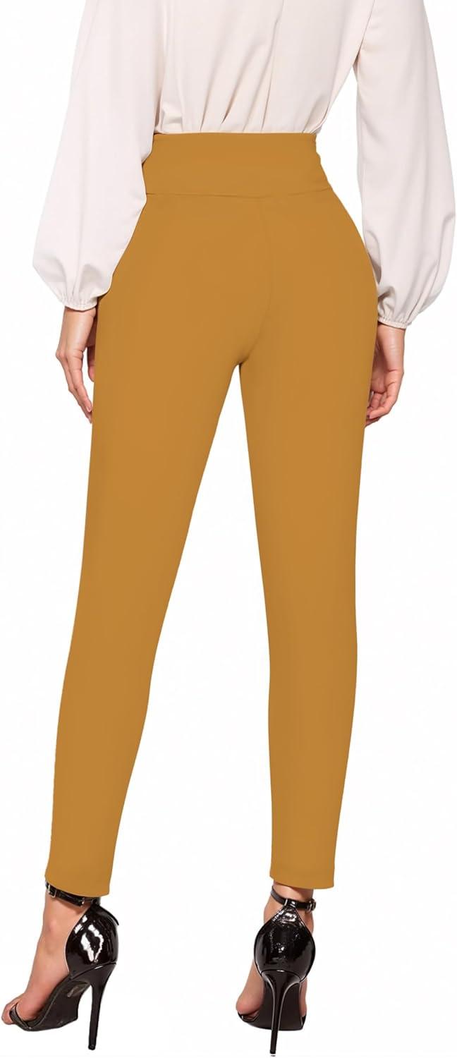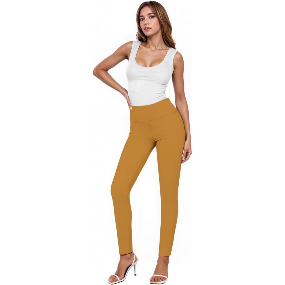 Hybrid & Company Women Stretch Skinny Dress Pants Nylon Ponte Pull On Office Leggings Trousers(1073t-mustard)