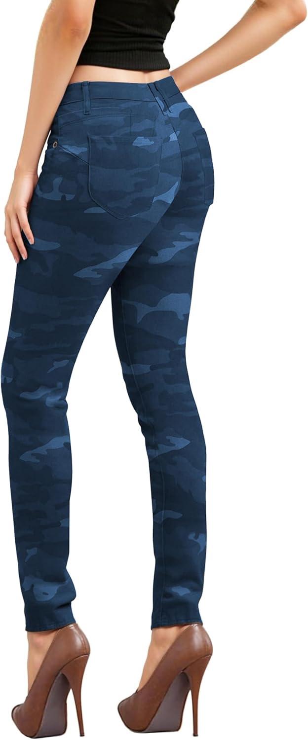 Hybrid & Company Women's Butt Lift Stretch Denim Jeans(Navy Camou)