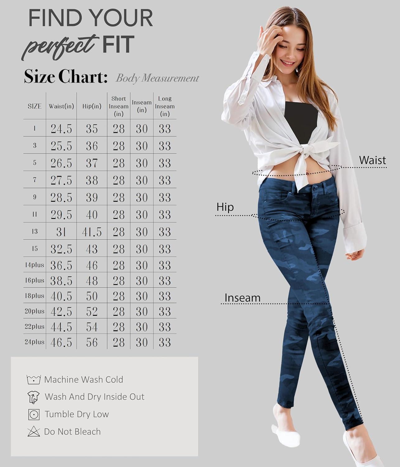 Hybrid & Company Women’s Butt Lift Stretch Denim Jeans(Navy Camou)