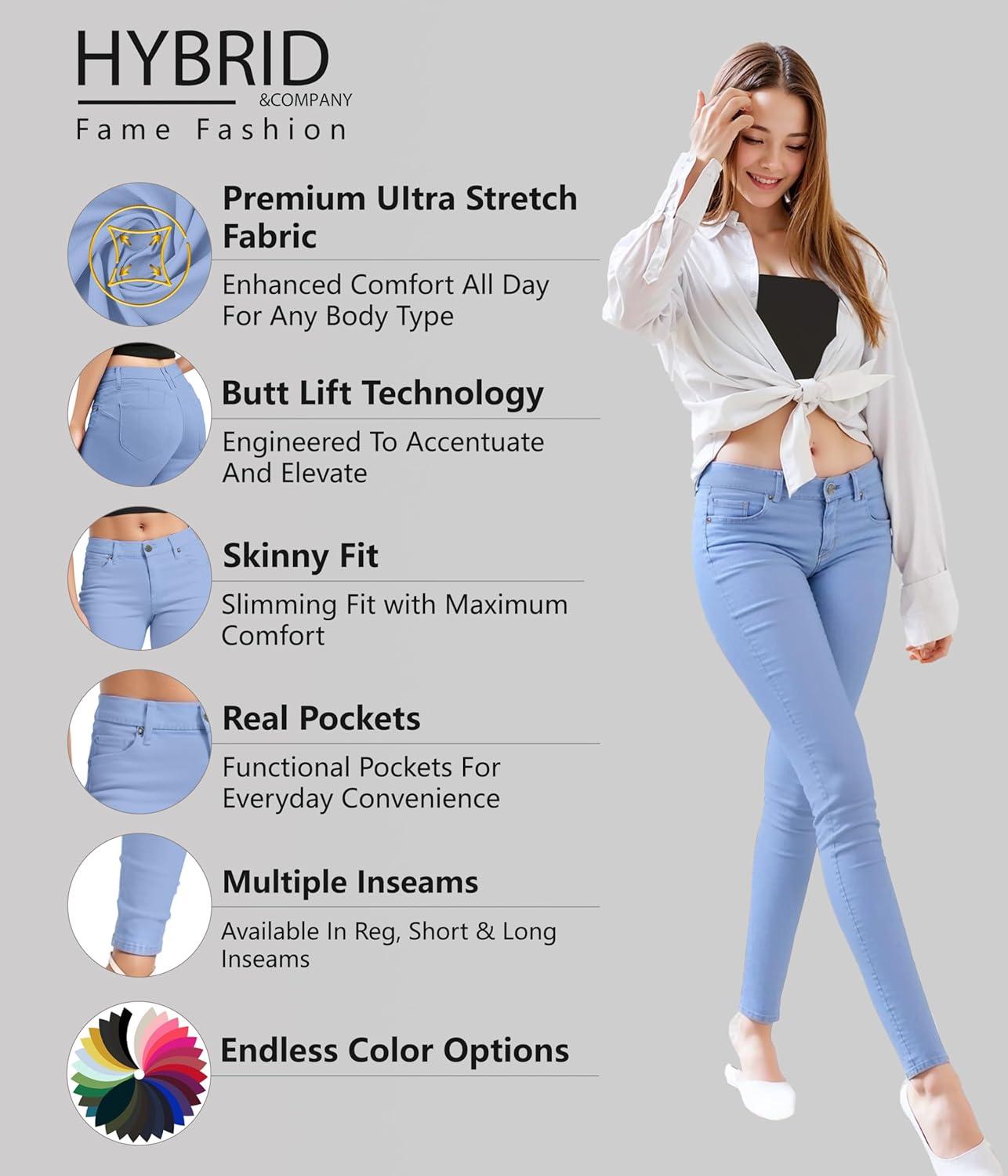 Hybrid & Company Women's Butt Lift Stretch Denim Jeans(Powder Blue)