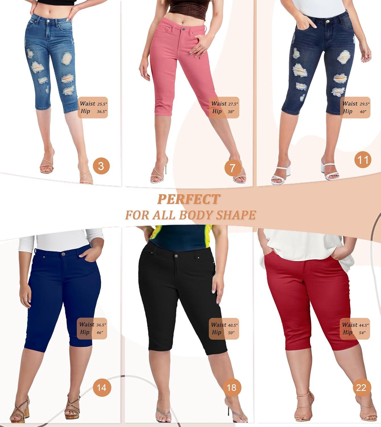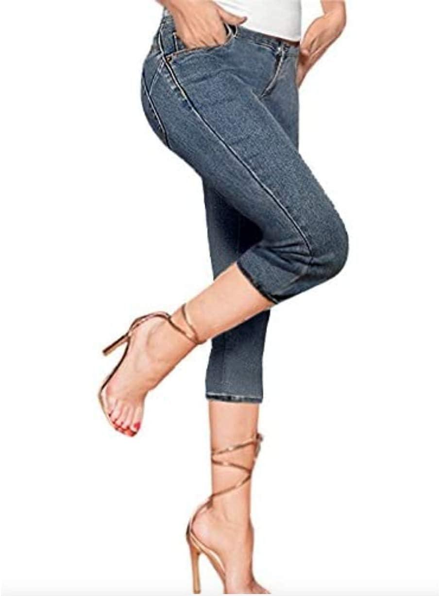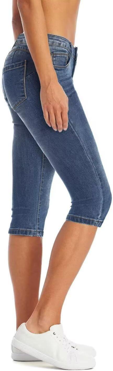 Hybrid & Company Women’s Butt Lift Super Comfy Stretch Denim Capri Short Jeans(Denim Medium Blu)