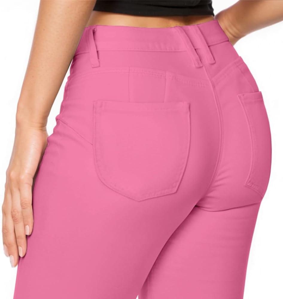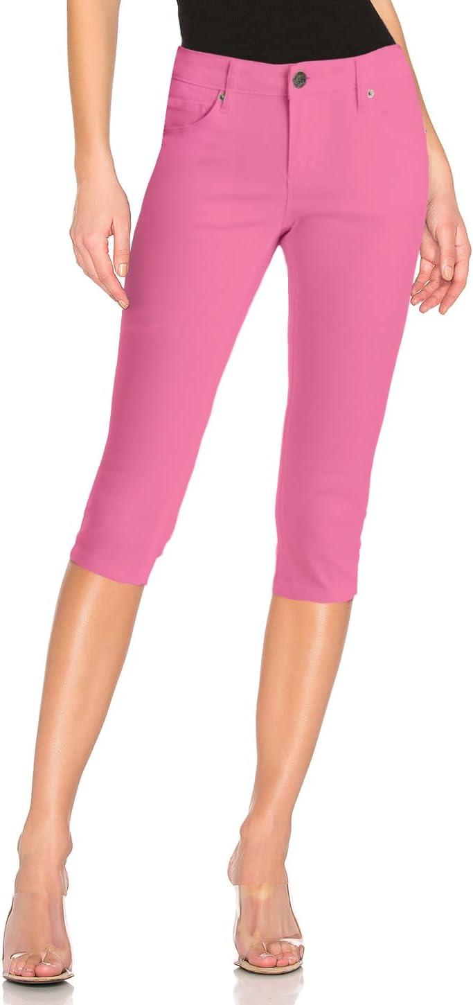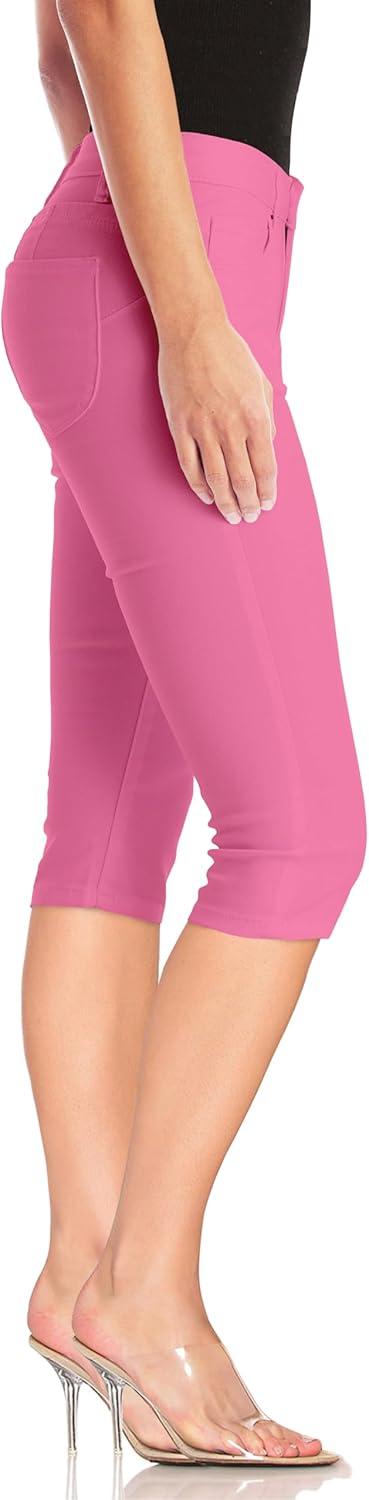 Hybrid & Company Women’s Butt Lift Super Comfy Stretch Denim Capri Short Jeans(Pink)