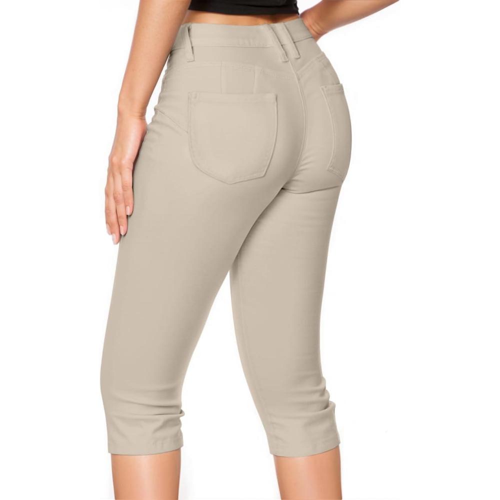 Hybrid & Company Women’s Butt Lift Super Comfy Stretch Denim Capri Short Jeans(Stone)