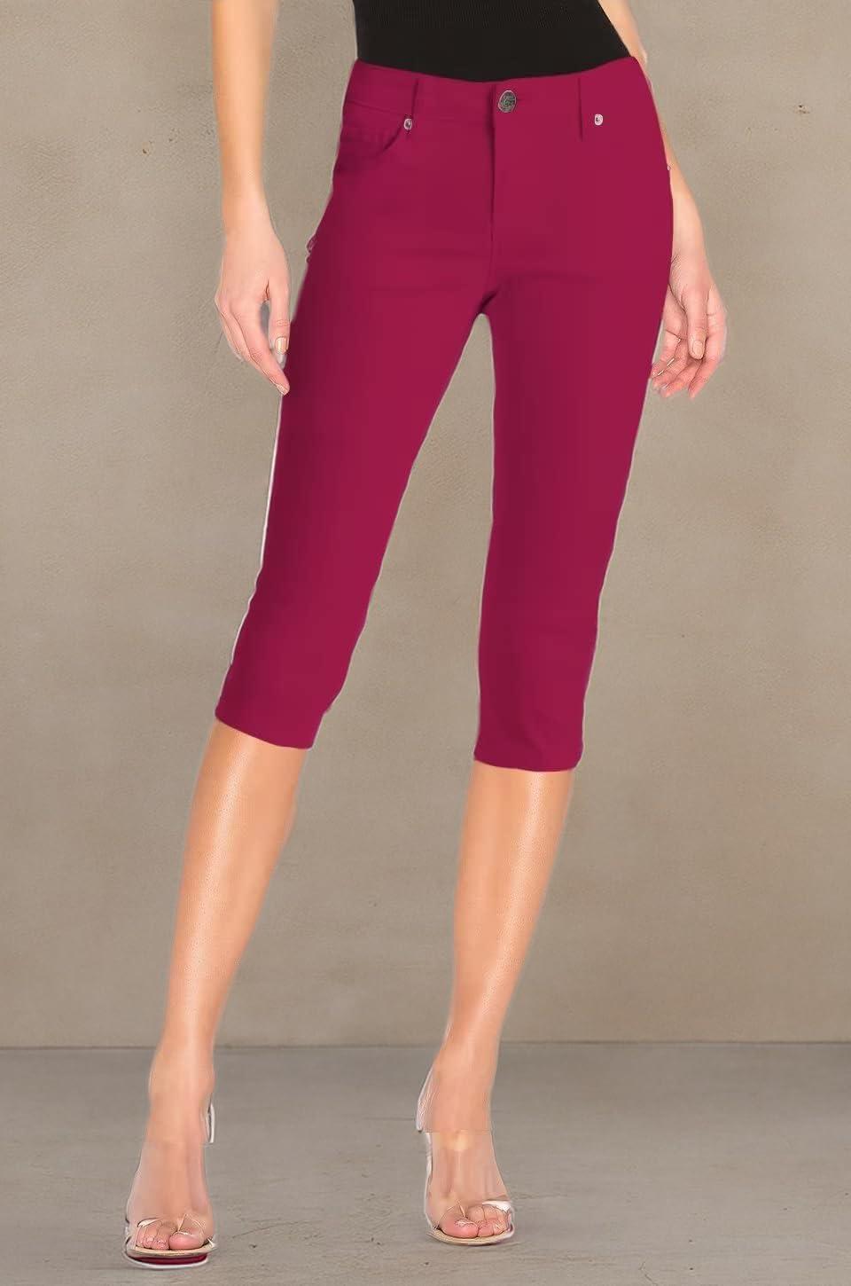 Hybrid & Company Women’s Butt Lift Super Comfy Stretch Denim Capri Short Jeans(Wine)