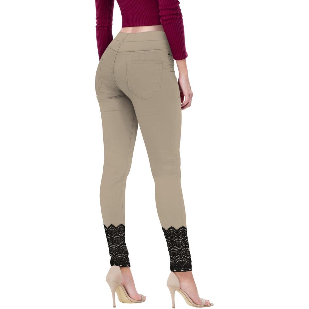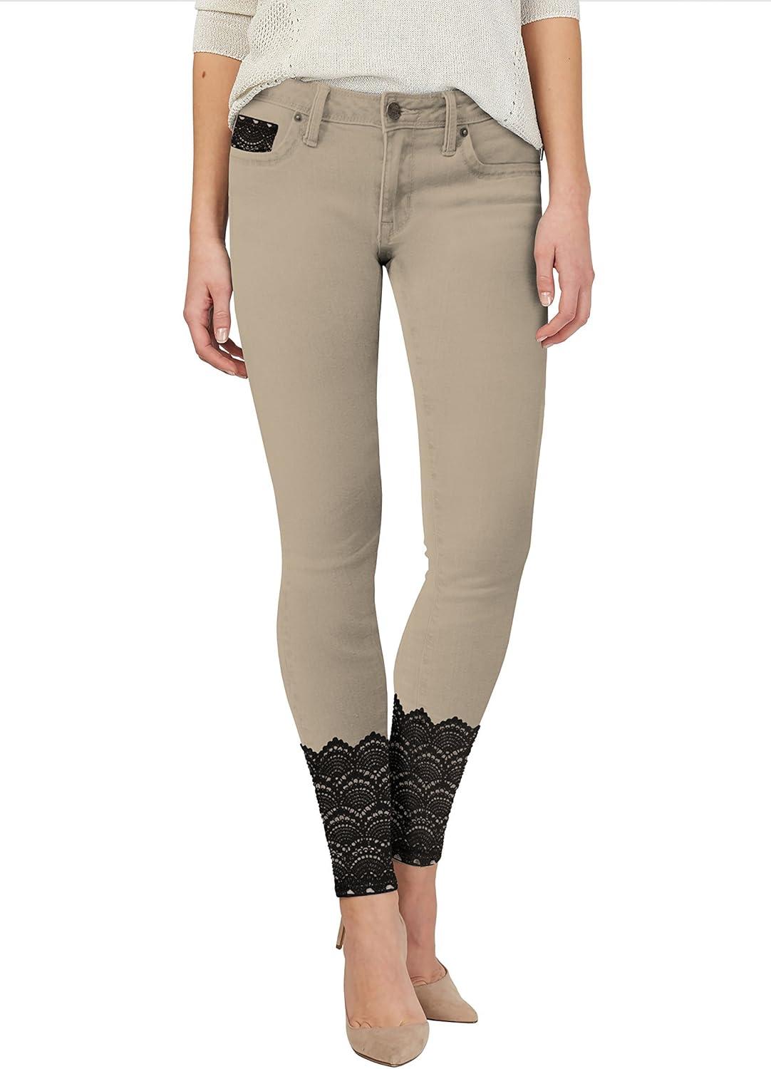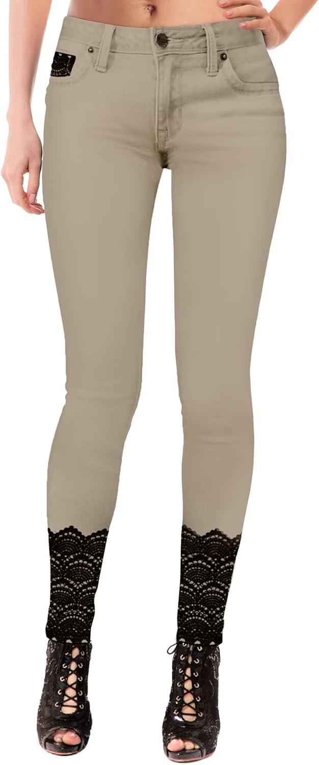 Hybrid & Company Women’s Butt Lift Super Comfy Stretch Ripped Skinny Jeans(Lace-khaki)