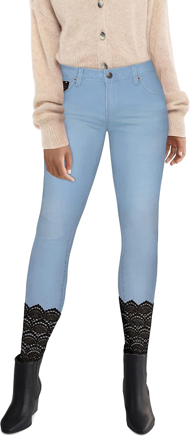 Hybrid & Company Women’s Butt Lift Super Comfy Stretch Ripped Skinny Jeans(Lace-light Wash)