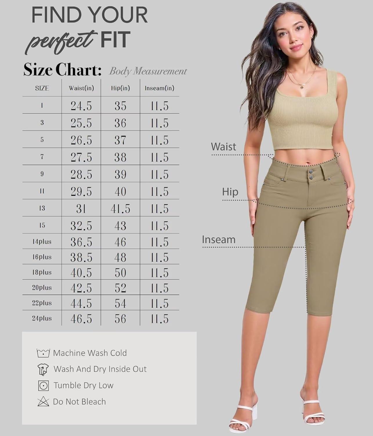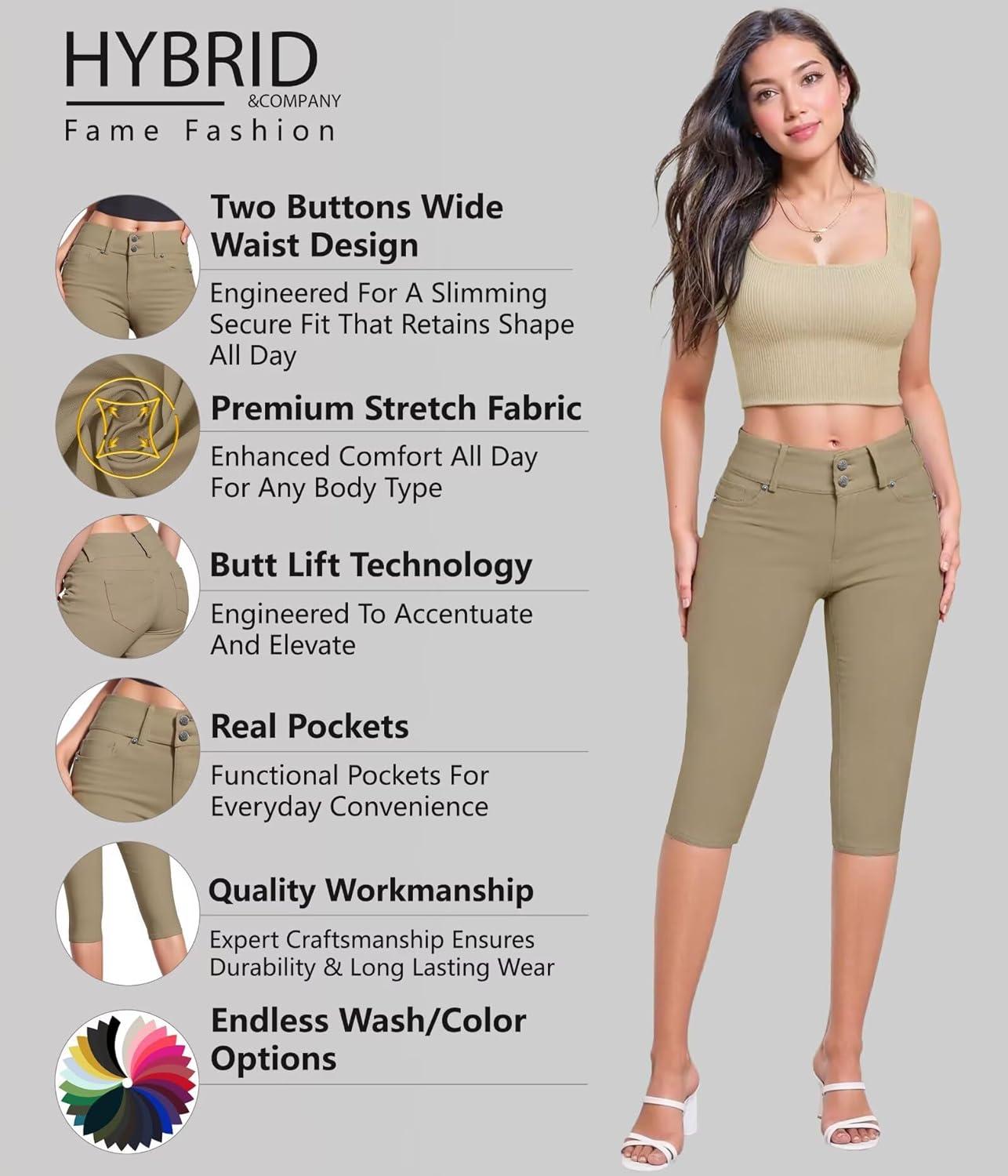 Hybrid & Company Women's Butt Lift V2 Super Comfy Stretch Denim Bermuda Shorts Capri(Capri-beige/Khak)