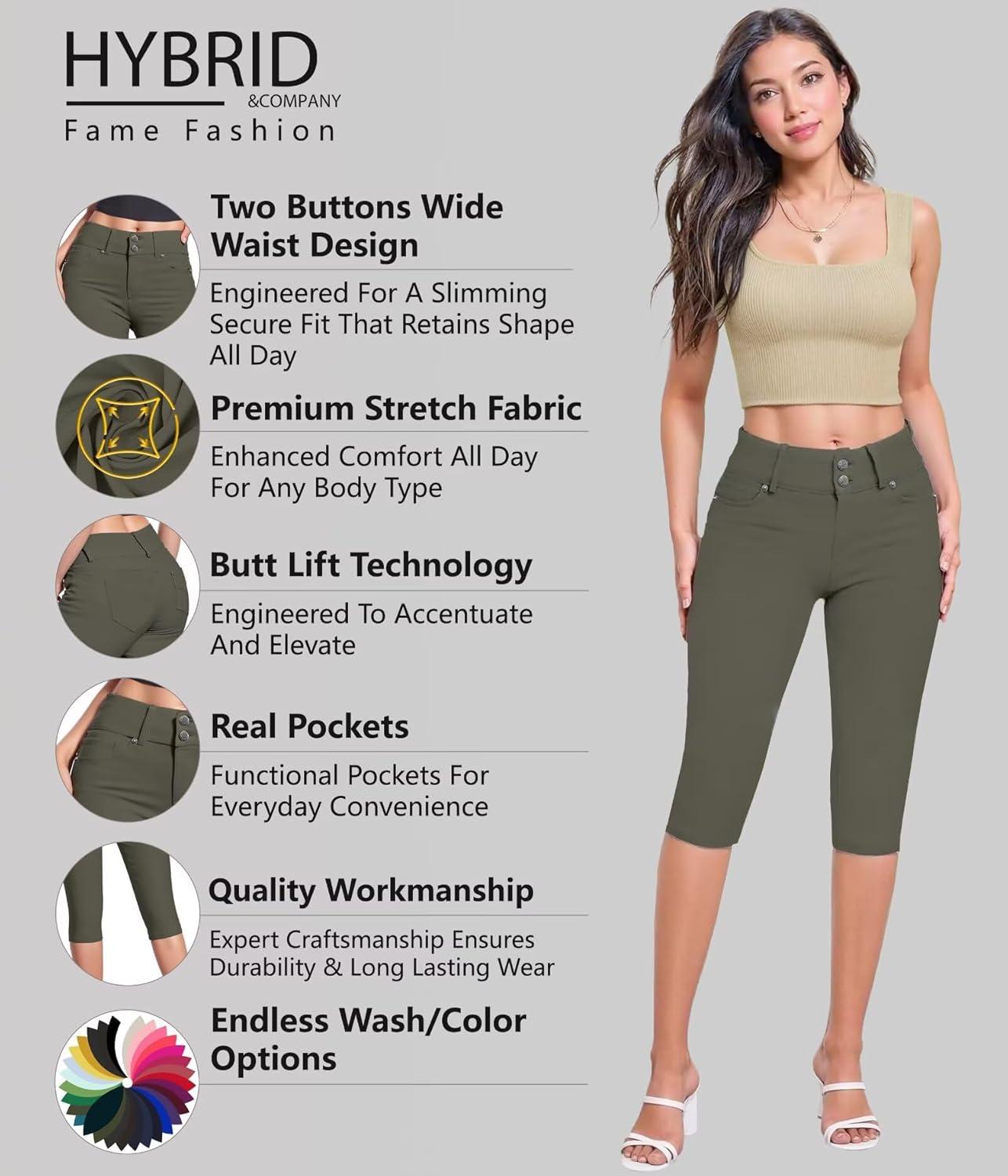 Hybrid & Company Women’s Butt Lift V2 Super Comfy Stretch Denim Bermuda Shorts Capri(Capri-olive)