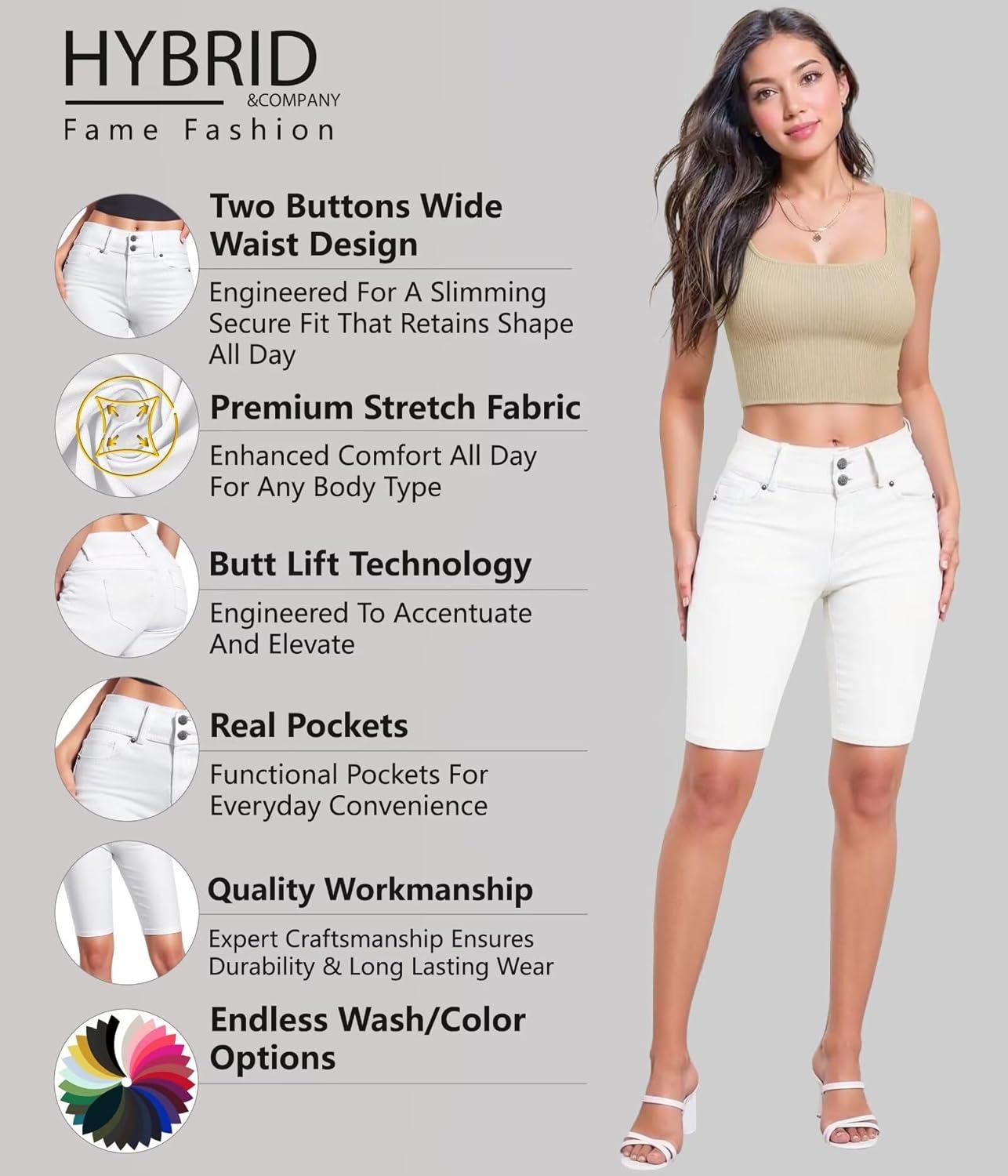 Hybrid & Company Women’s Butt Lift V2 Super Comfy Stretch Denim Skinny Jeans(Bermuda-white)
