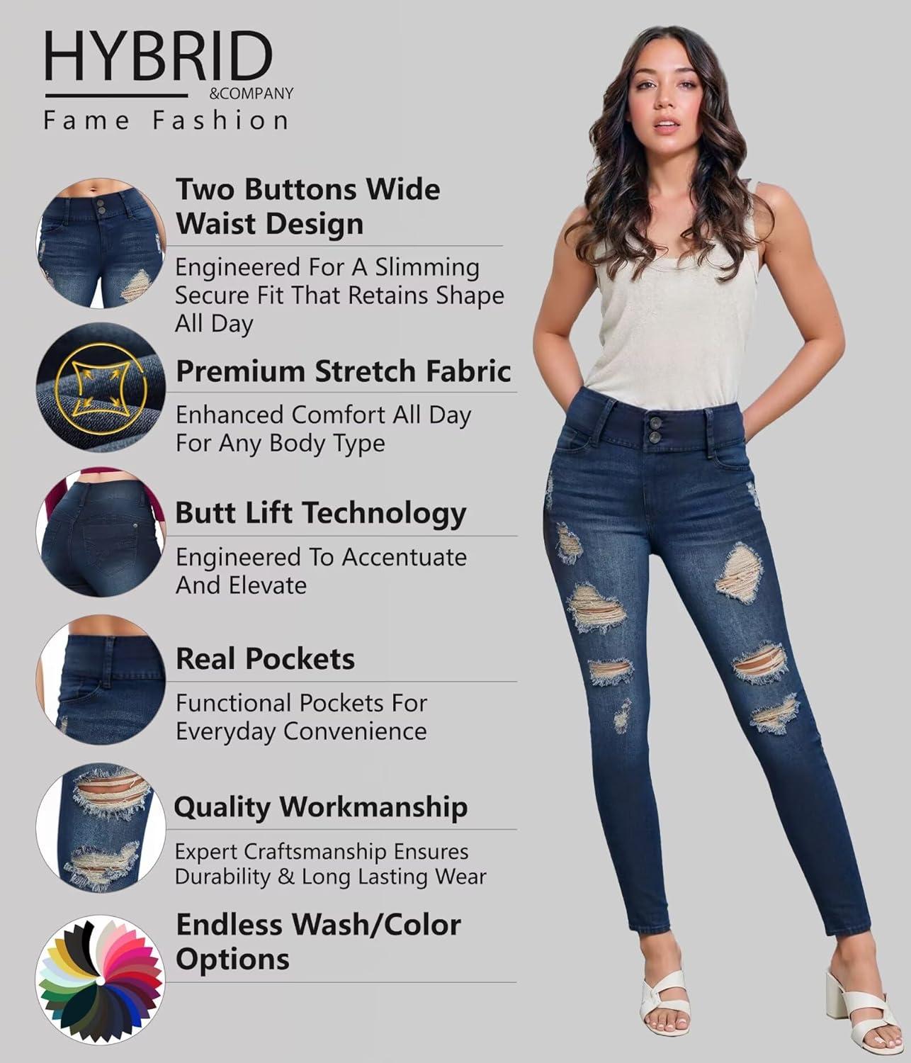 Hybrid & Company Women’s Butt Lift V2 Super Comfy Stretch Denim Skinny Jeans(Destructed-dwash)