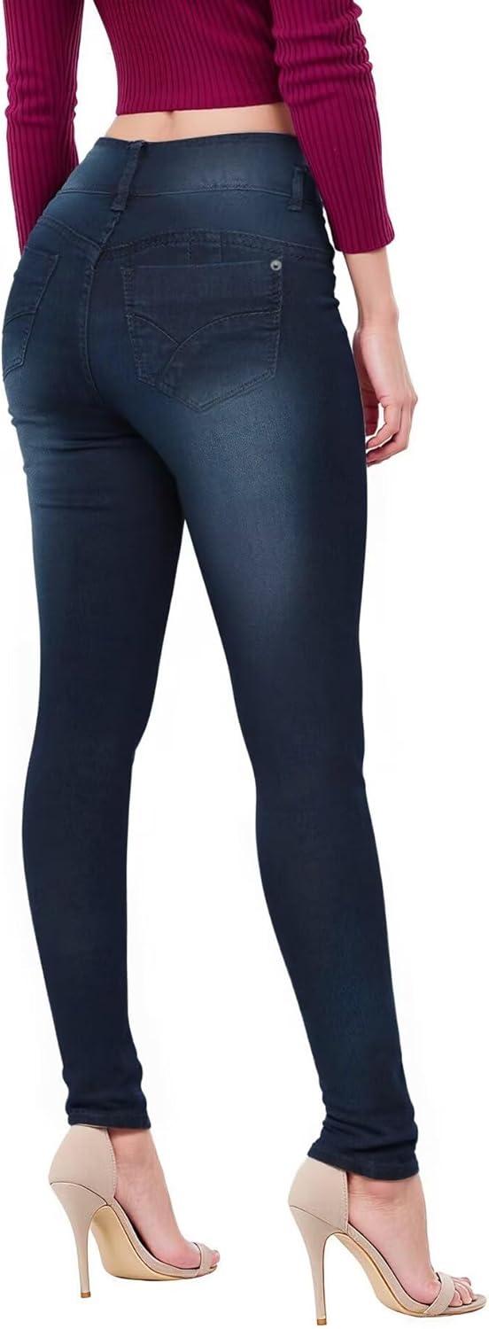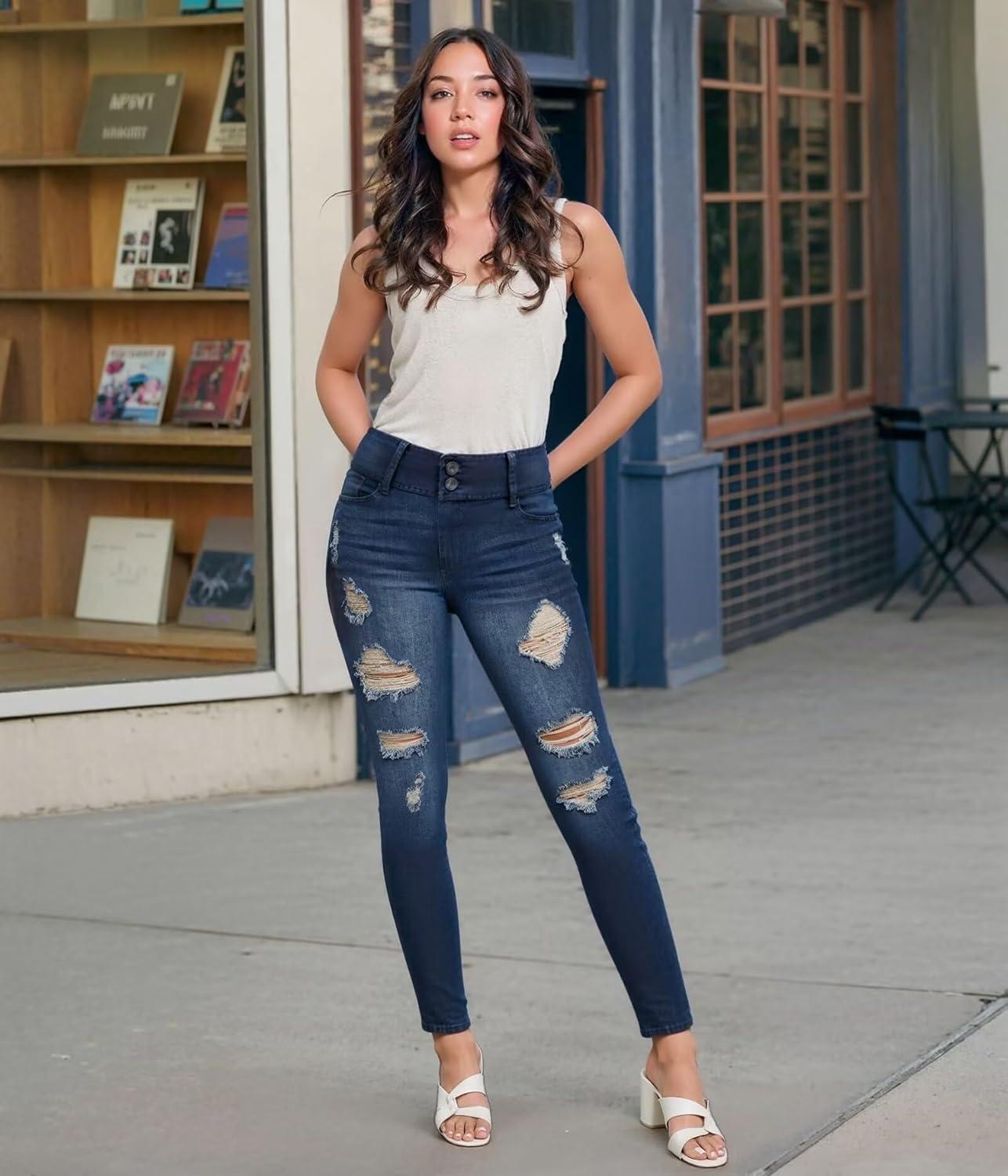 Hybrid & Company Women’s Butt Lift V2 Super Comfy Stretch Denim Skinny Jeans(Destructed-indigo)