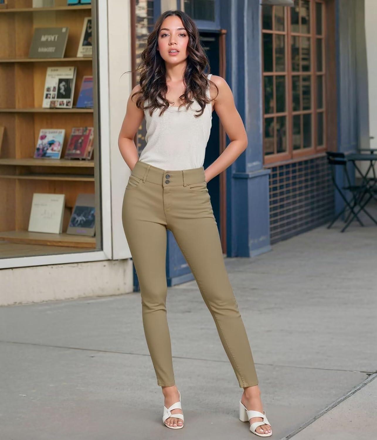 Hybrid & Company Women’s Butt Lift V2 Super Comfy Stretch Denim Skinny Jeans(Khaki)